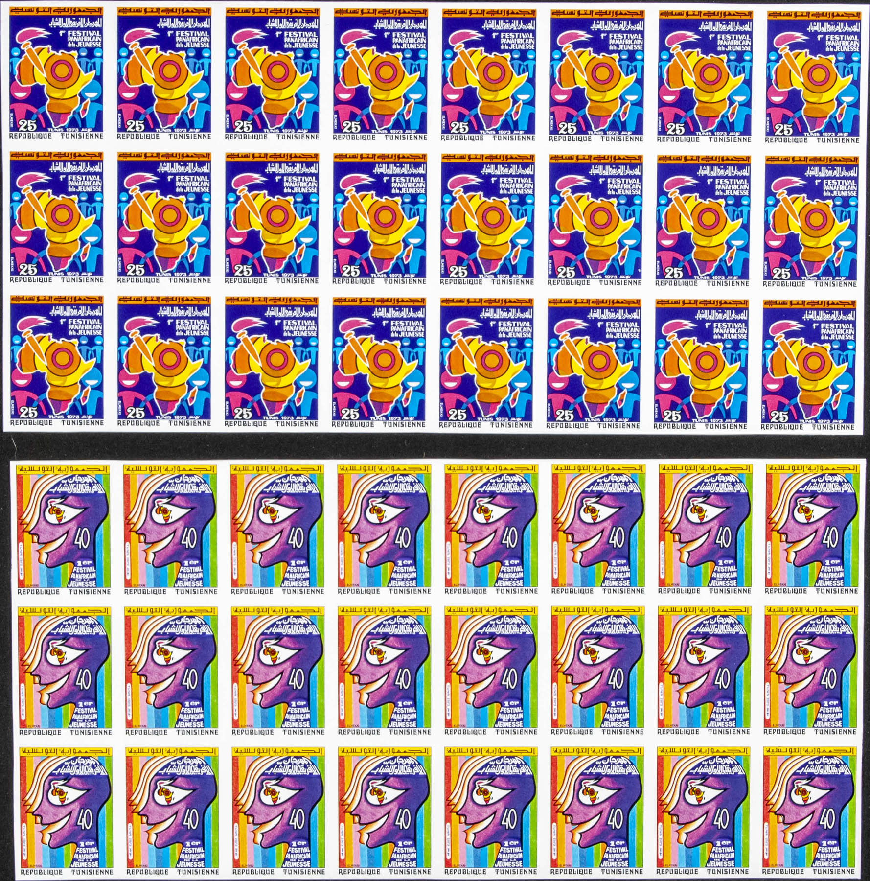 ★★Yvert 753/54. 1973. Youth festival. Group of complete IMPERFORATED set.