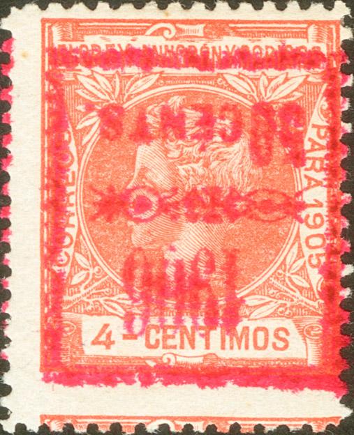 ★ 34Bbhhi,34Dhi,34Dbhi,34Dchi. 1906. 15 cts sobre 2 ctvos violeta y 50 cts sobre 4 cts naranja, tres sellos. SOBRECARGAS INVERTIDAS. MAGNIFICOS. Edifil 2018: 220 Euros