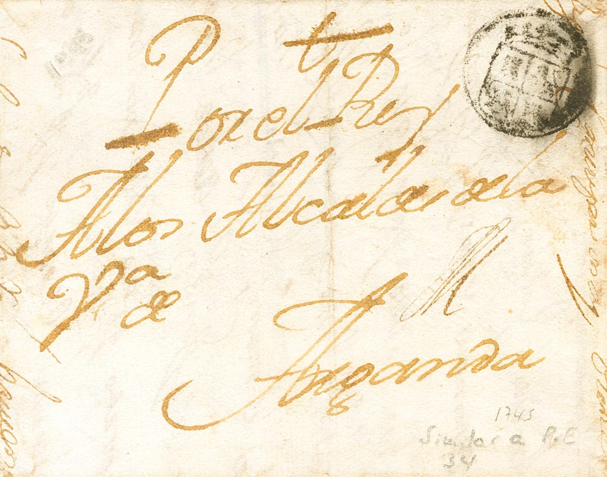 1745. MADRID a ARGANDA DEL REY. Marca Correo Real, en negro (similar a P.E.34 con corona abierta) y anotación manuscrita "Por el Rey". MAGNIFICA Y RARISIMA.