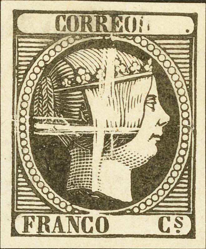 (★)1853. Sin cifra del valor, negro. PRUEBA DE PUNZON LIMADA. MAGNIFICA. (Gálvez 33)