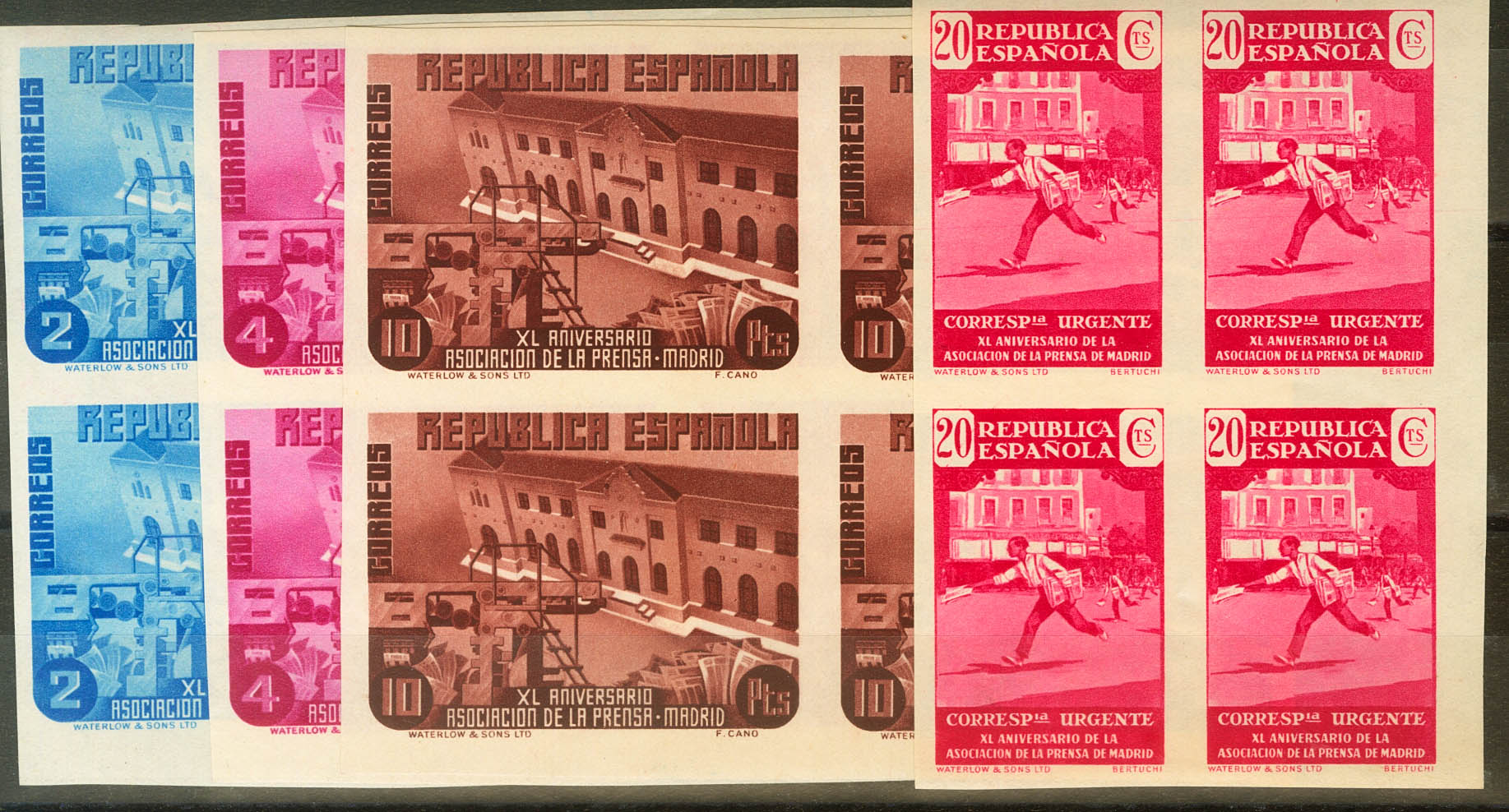 ★★ 695/10s(4). 1936. Complete series, block of four. WITHOUT TOOTH. MAGNIFICENT AND EXTRAORDINARY RARE, ESPECIALLY WITH THIS EXCEPTIONAL QUALITY. Edifil 2018: +2,000 Euros