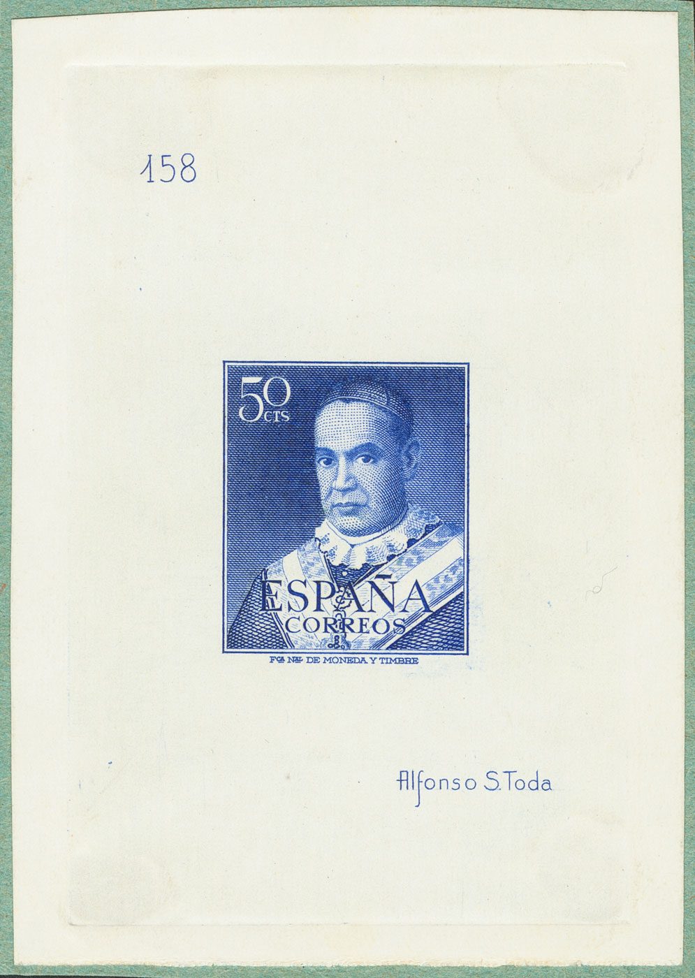 English (★) 1102P. 1951. 50 cts blue. PUNCH PROOF with numbering and name of the engraver. MAGNIFICENT AND RARE.