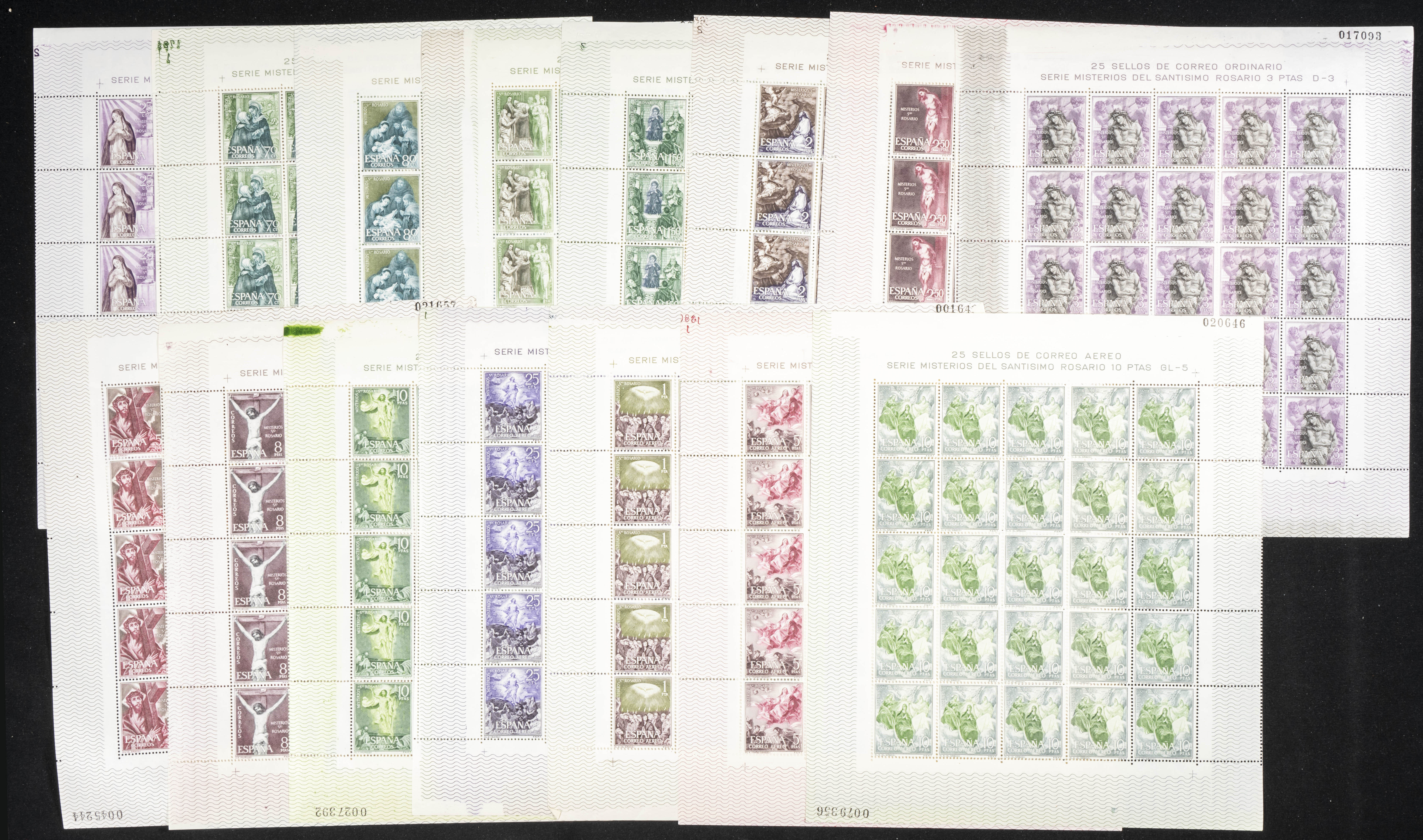 ★★ 1463/77(25). 1962. Twenty-five complete series in sheets. ROSARY (generally good quality). TO EXAMINE. Edifil 2024: 250 Euros