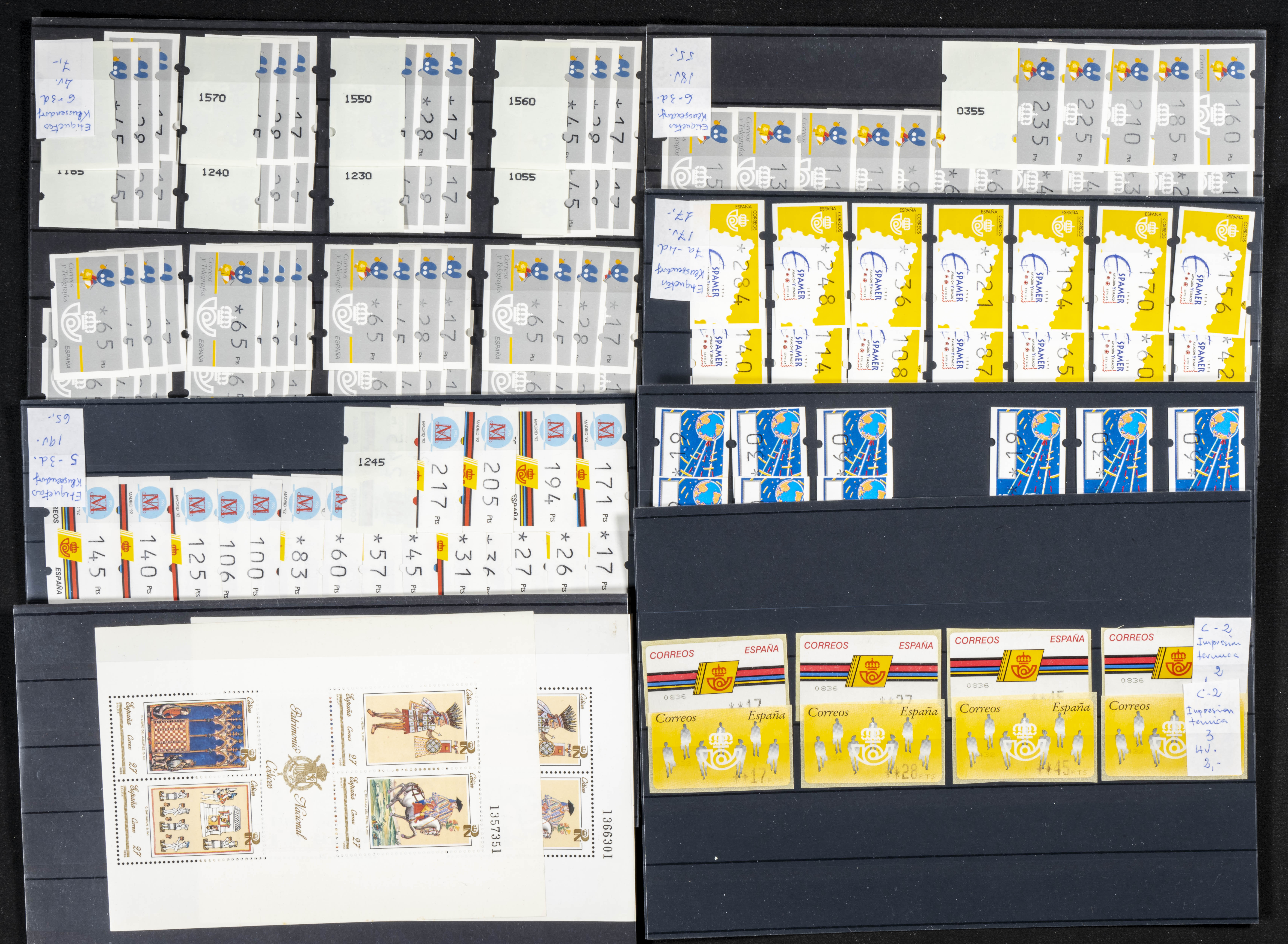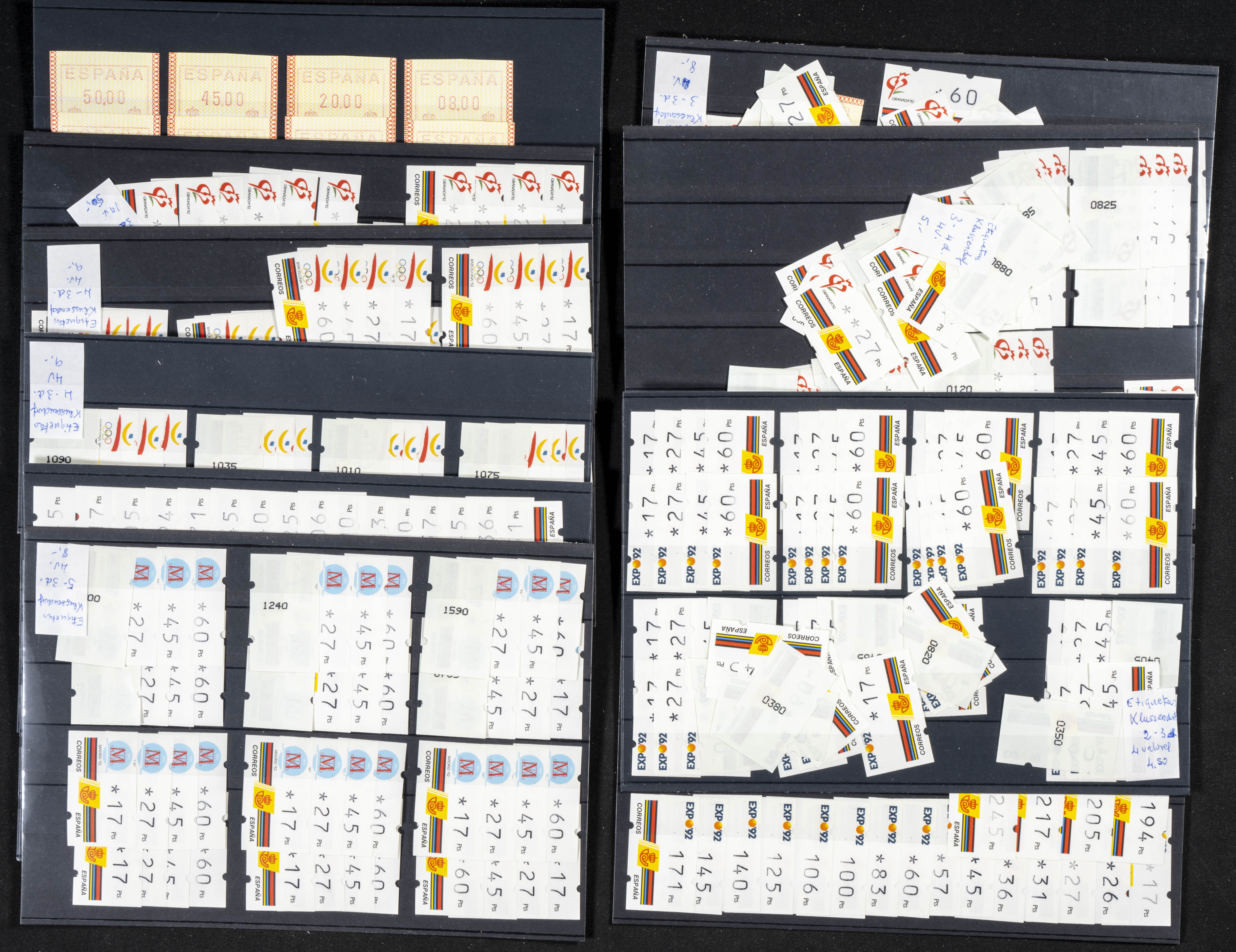 English ★★(1920ca). Interesting set of thousands of loose stamps between 1920 and 1980, in new condition and most in sheets or large blocks, includes numerous complete series, Suits and Escudos series, complete phosphor series (up to 75 pts), several sets of ATM France labels and Klussendorf, as well as a classifier with hundreds of euro stamps (some washed or recovered). HIGH CATALOG VALUE. TO EXAMINE.