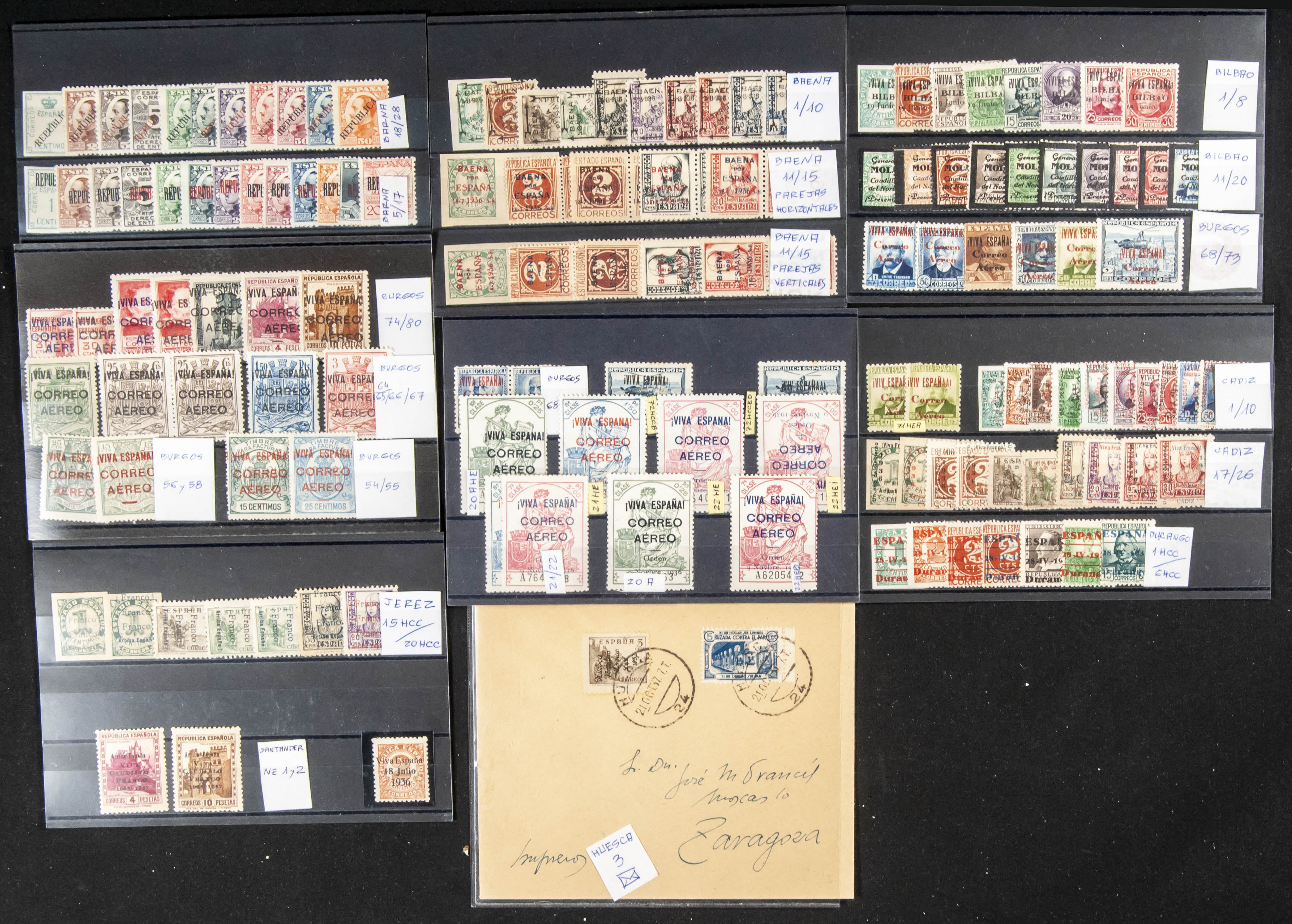 ★(1931ca). Set of complete series and loose stamps of Local and Patriotic Emissions in new condition, includes varieties and a letter with 5 cts from Huesca. TO EXAMINE.