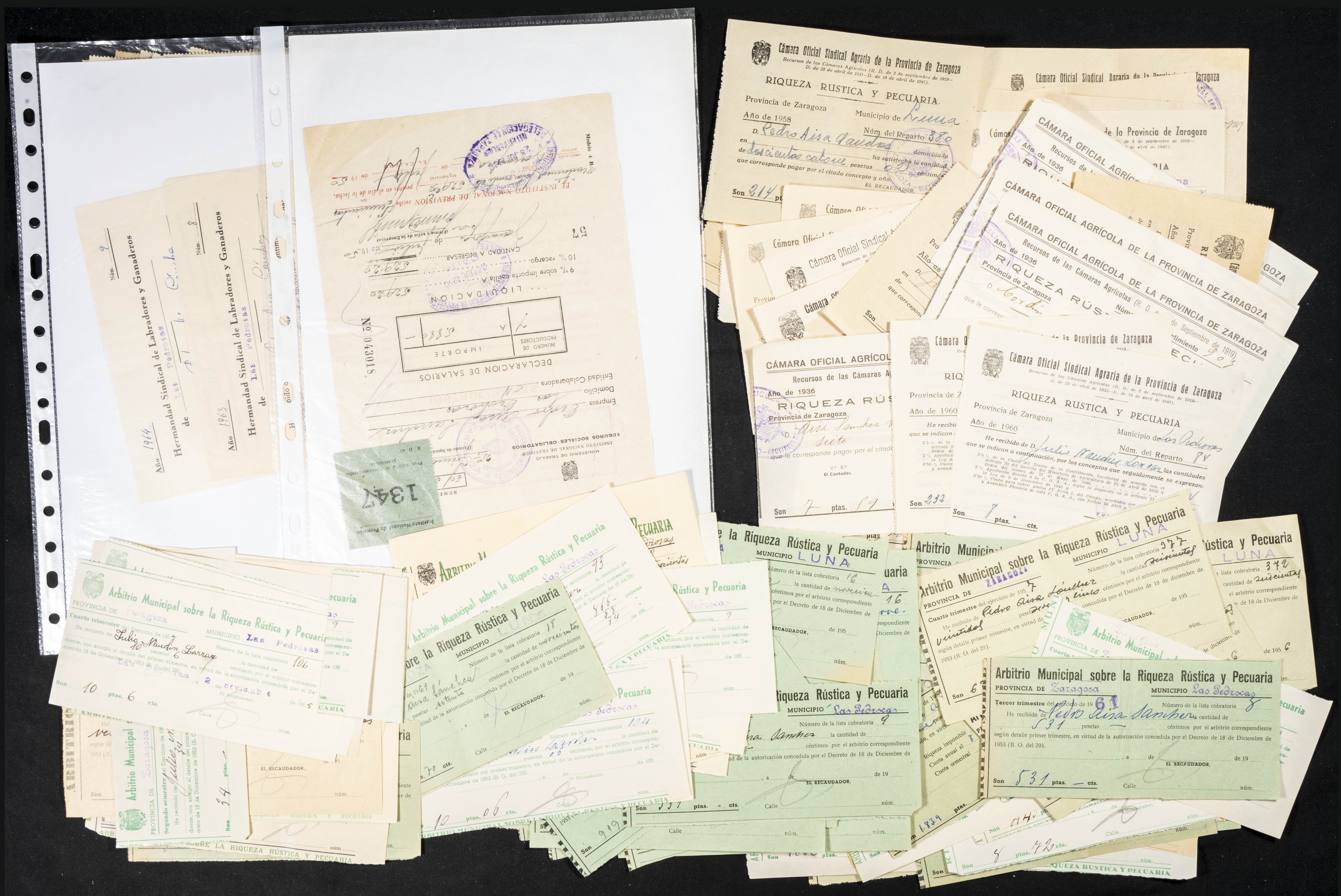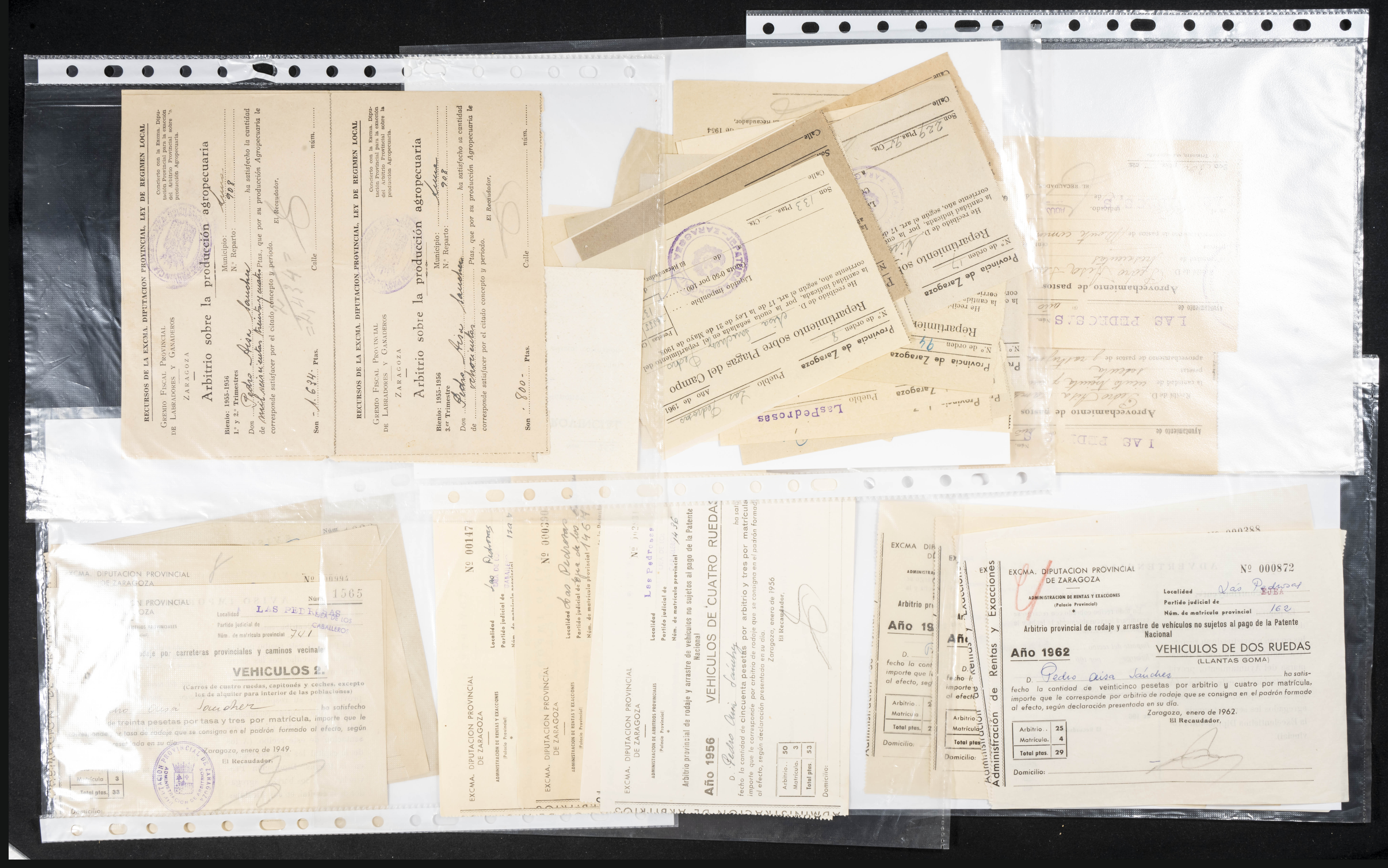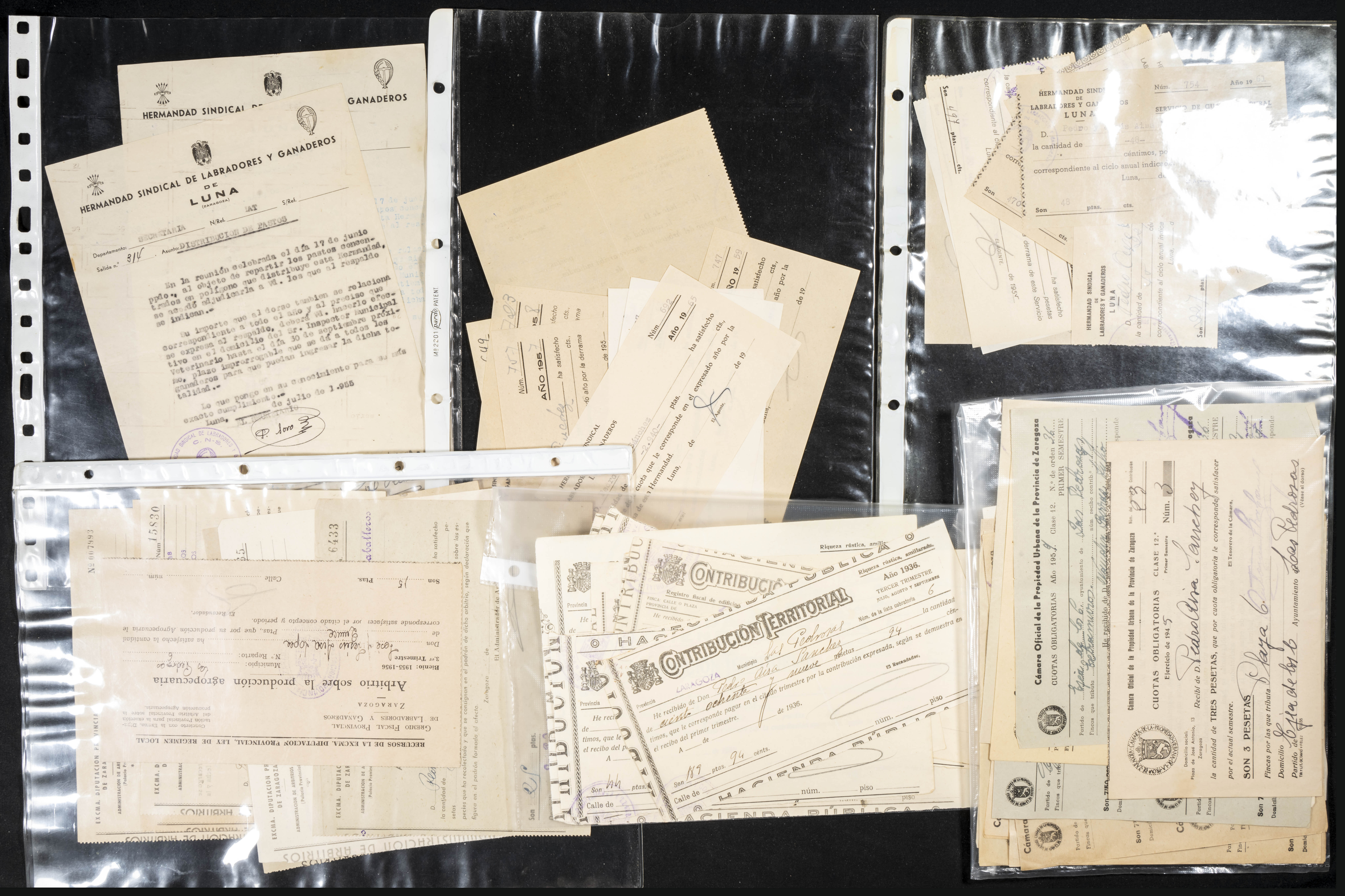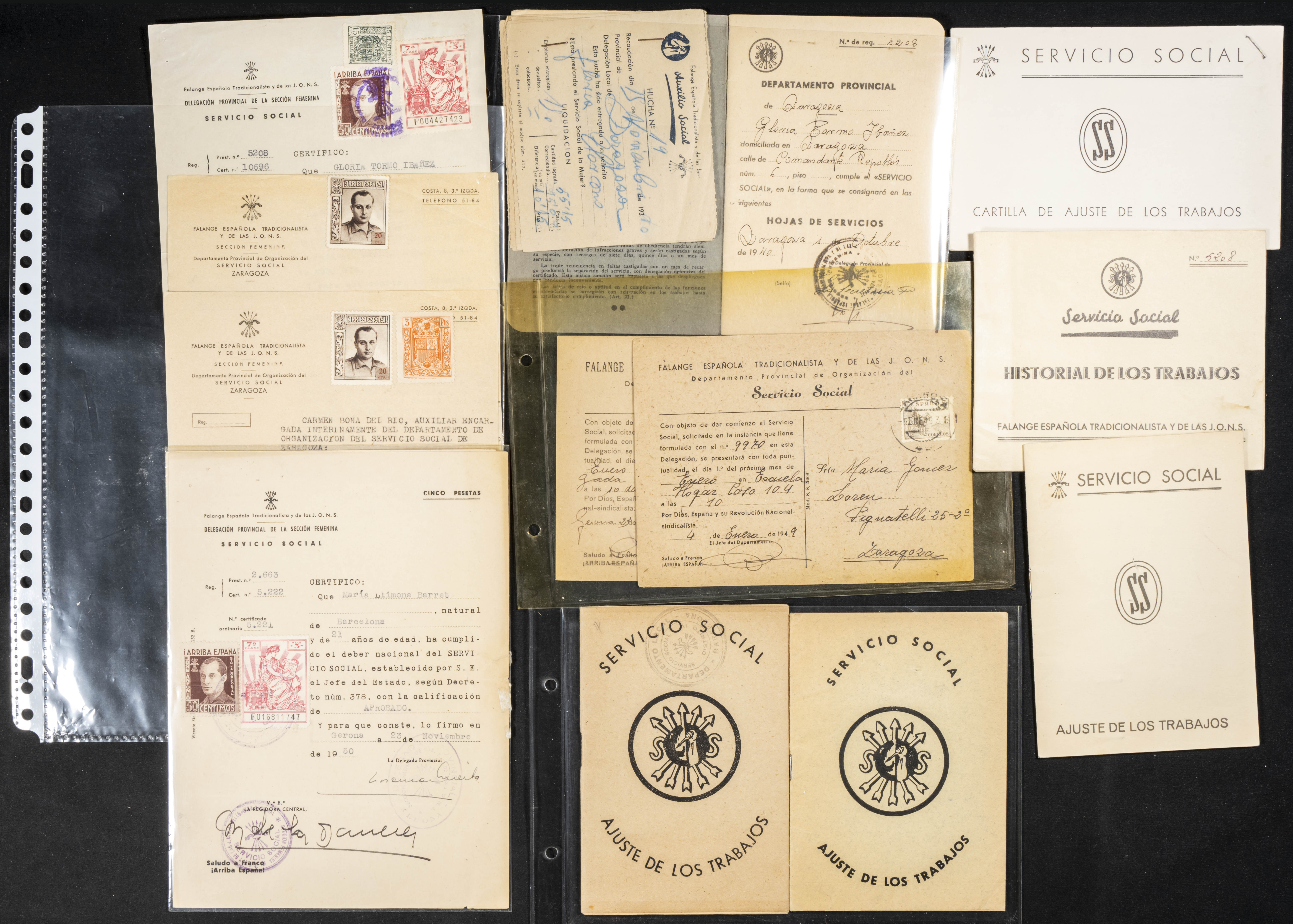 (1936ca). Set of various documents dated between 1937 and 1970, some related to the Civil War such as a Soldier's Book, Social Service Documents (cards and tokens) and others from the Postwar period with more than twenty Ration cards, medical documents and cards, receipts of fees, contributions, rural taxes, embroidery catalogues, exhibitions, etc. TO EXAMINE.