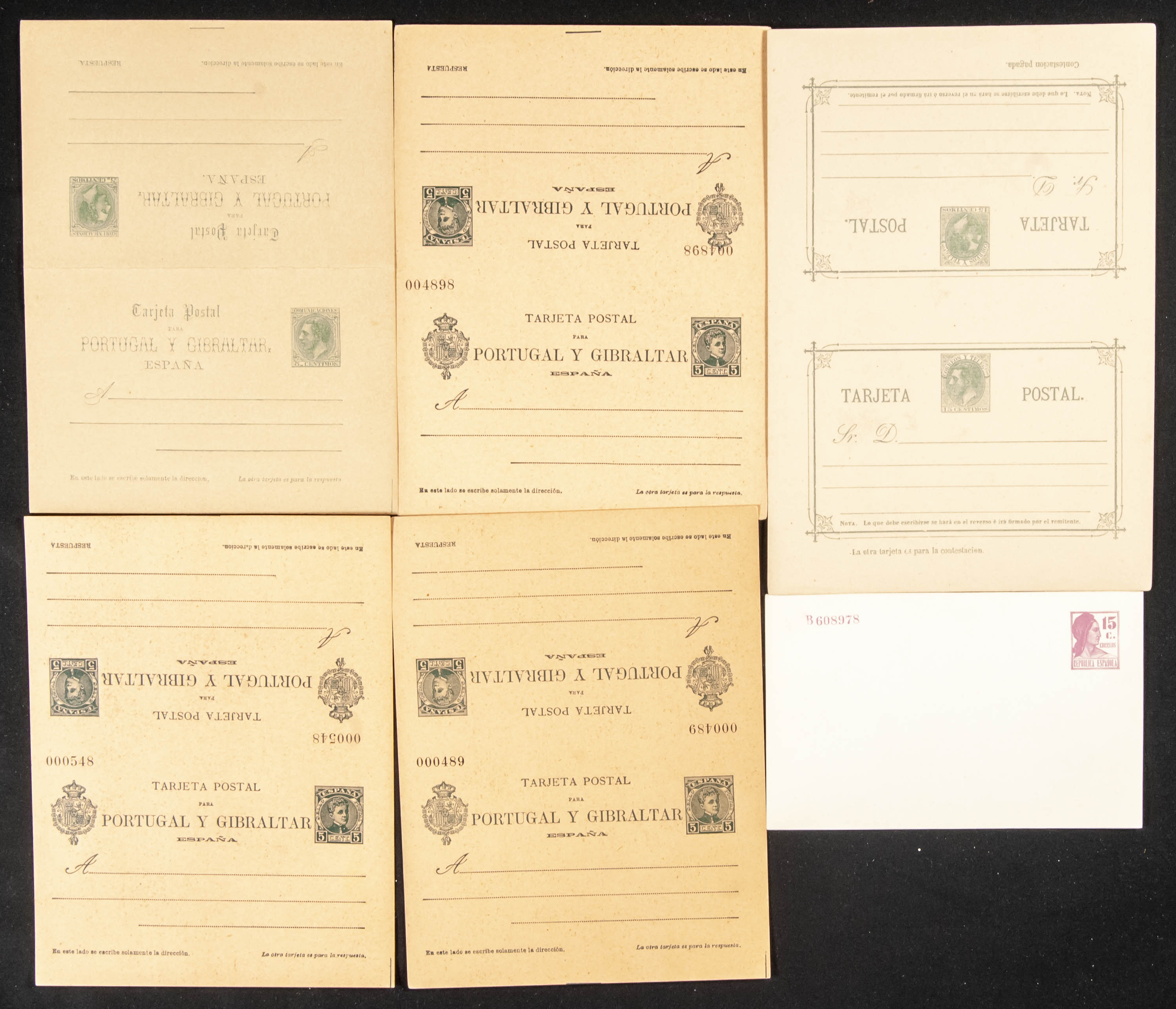(★)(1873ca). Set of Whole Postcards, most of them round-trip and some unfolded, between 1873 and 1925, unused, including among others EP58 from 1925 (unfolded) and two Private Whole Postcards of Allegory of the Republic. TO EXAMINE. Edifil 2023: 1,242 Euros