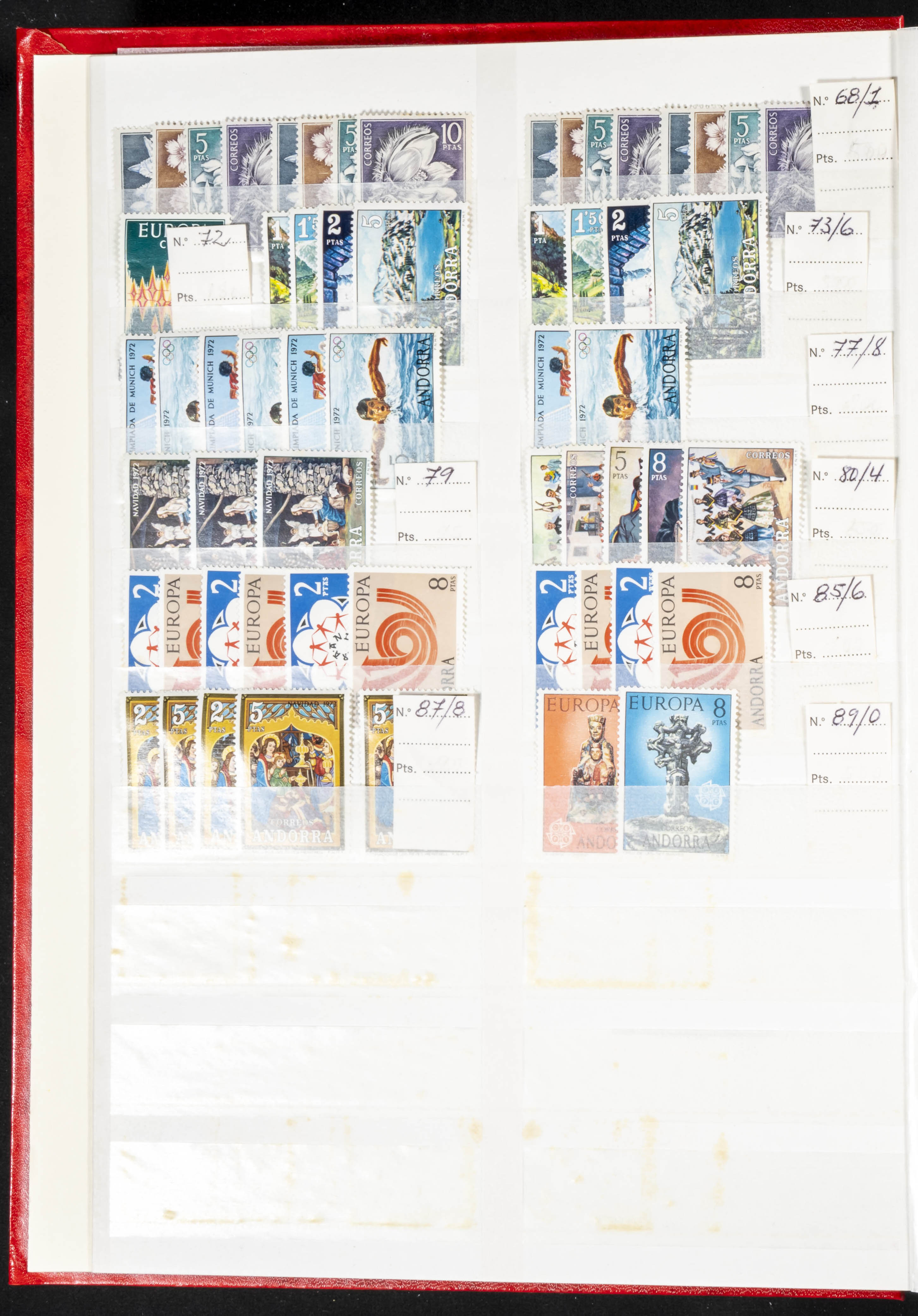 English ★★(1965ca). New stock set from Spanish Andorra between 1964 and 2010, French Andorra between 1965 and 2009 and Equatorial Guinea between 1967 and 1995, most between two and four units of each, including some stamps from previous periods. HIGH FACIAL VALUE. TO EXAMINE.