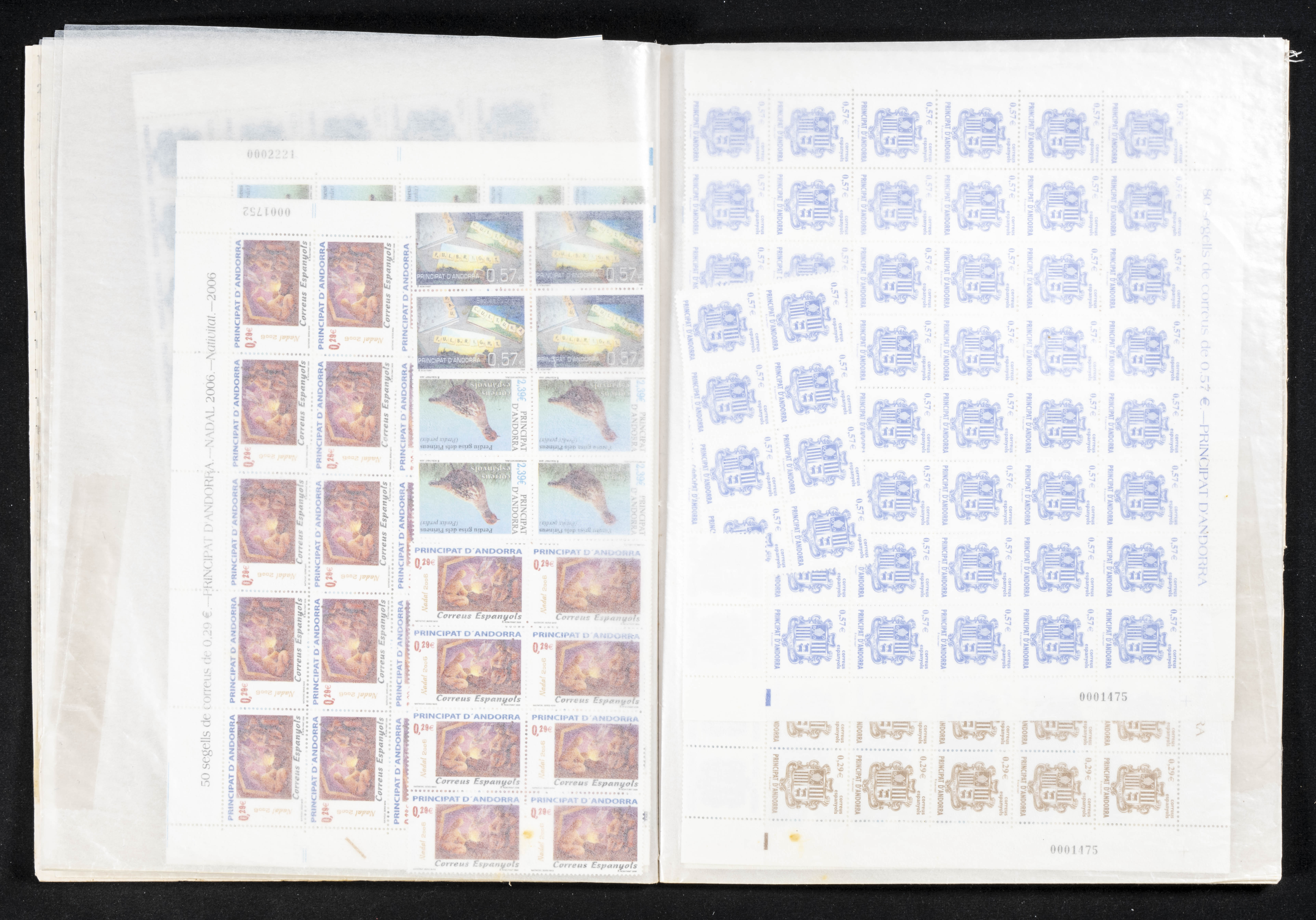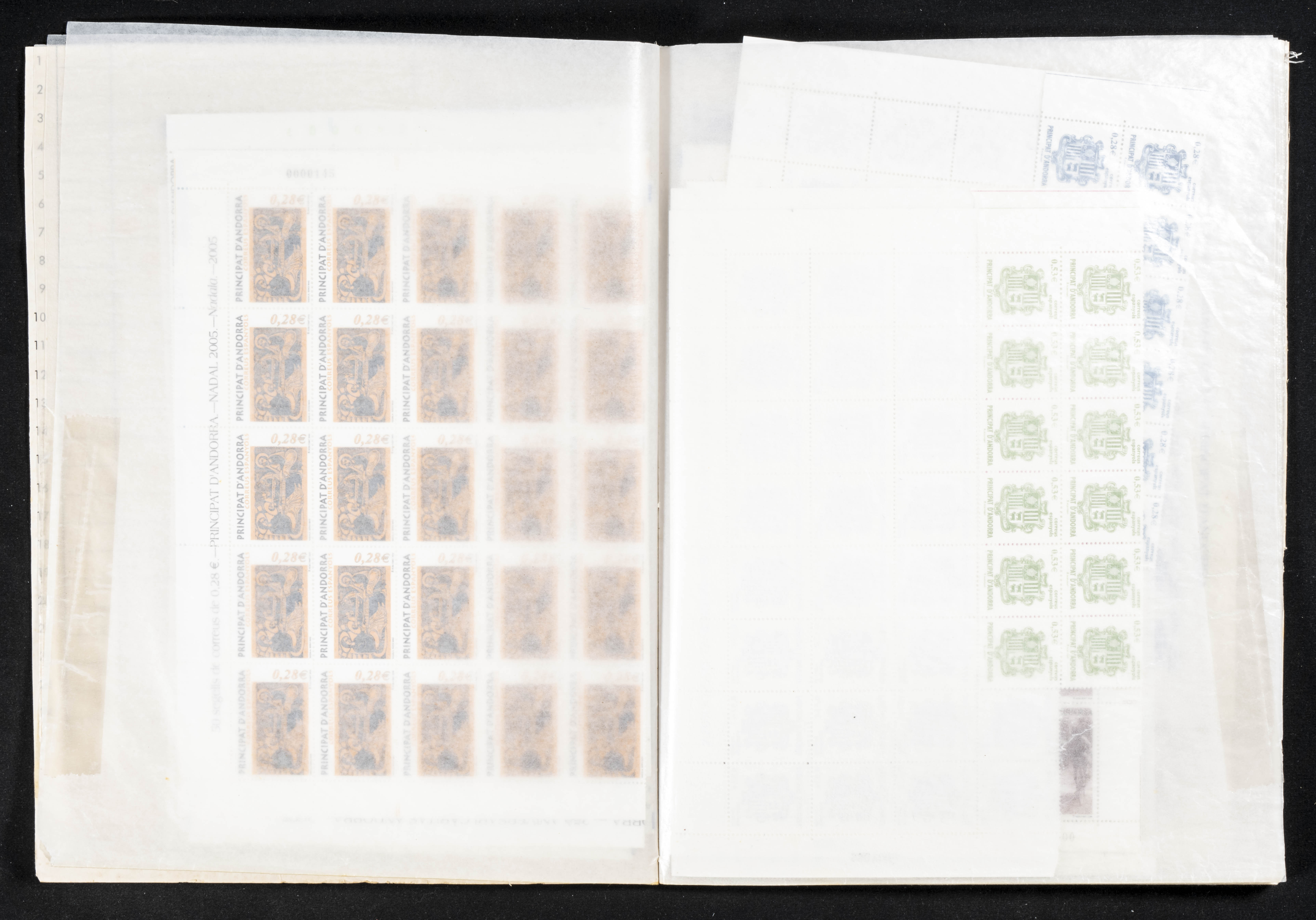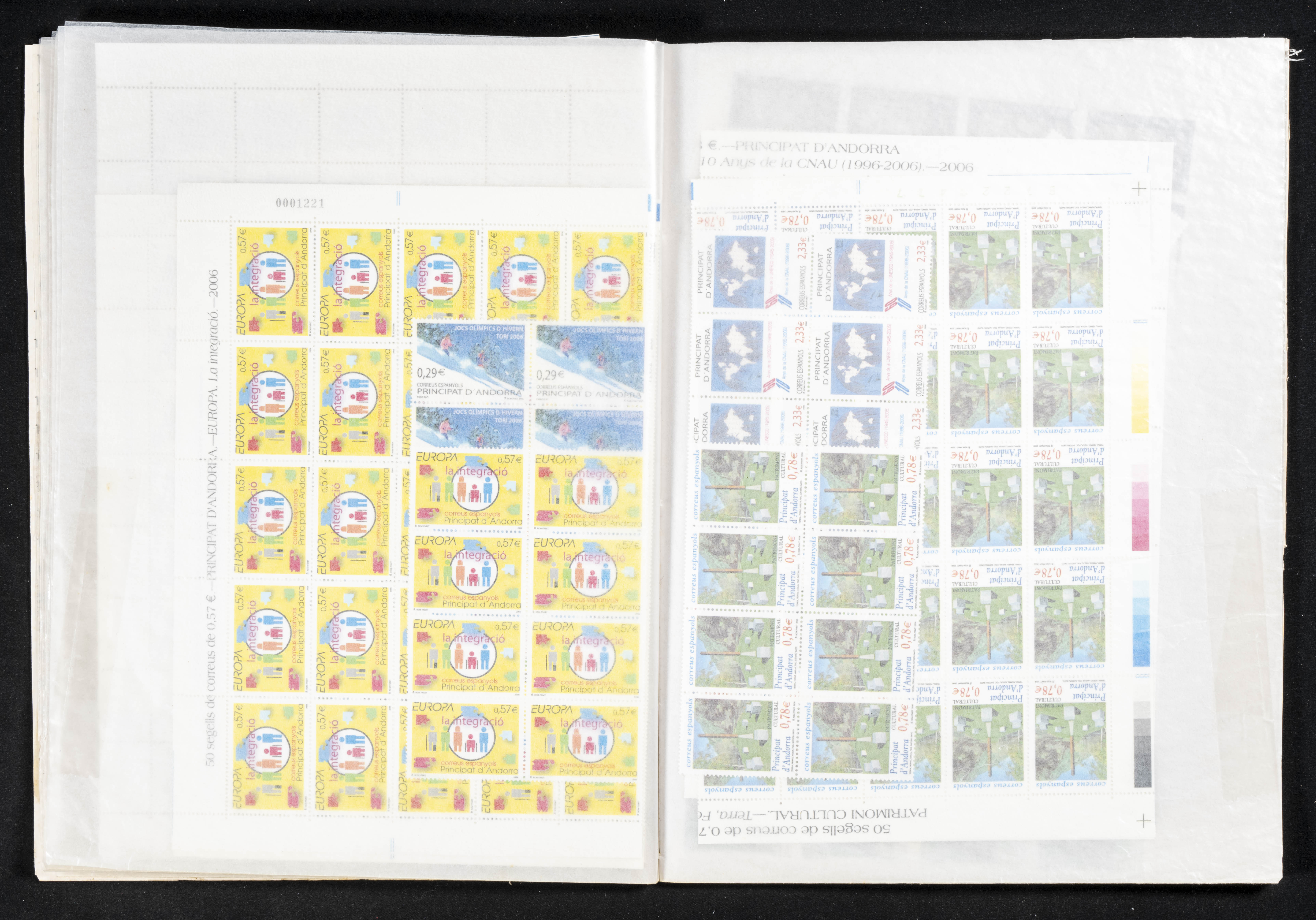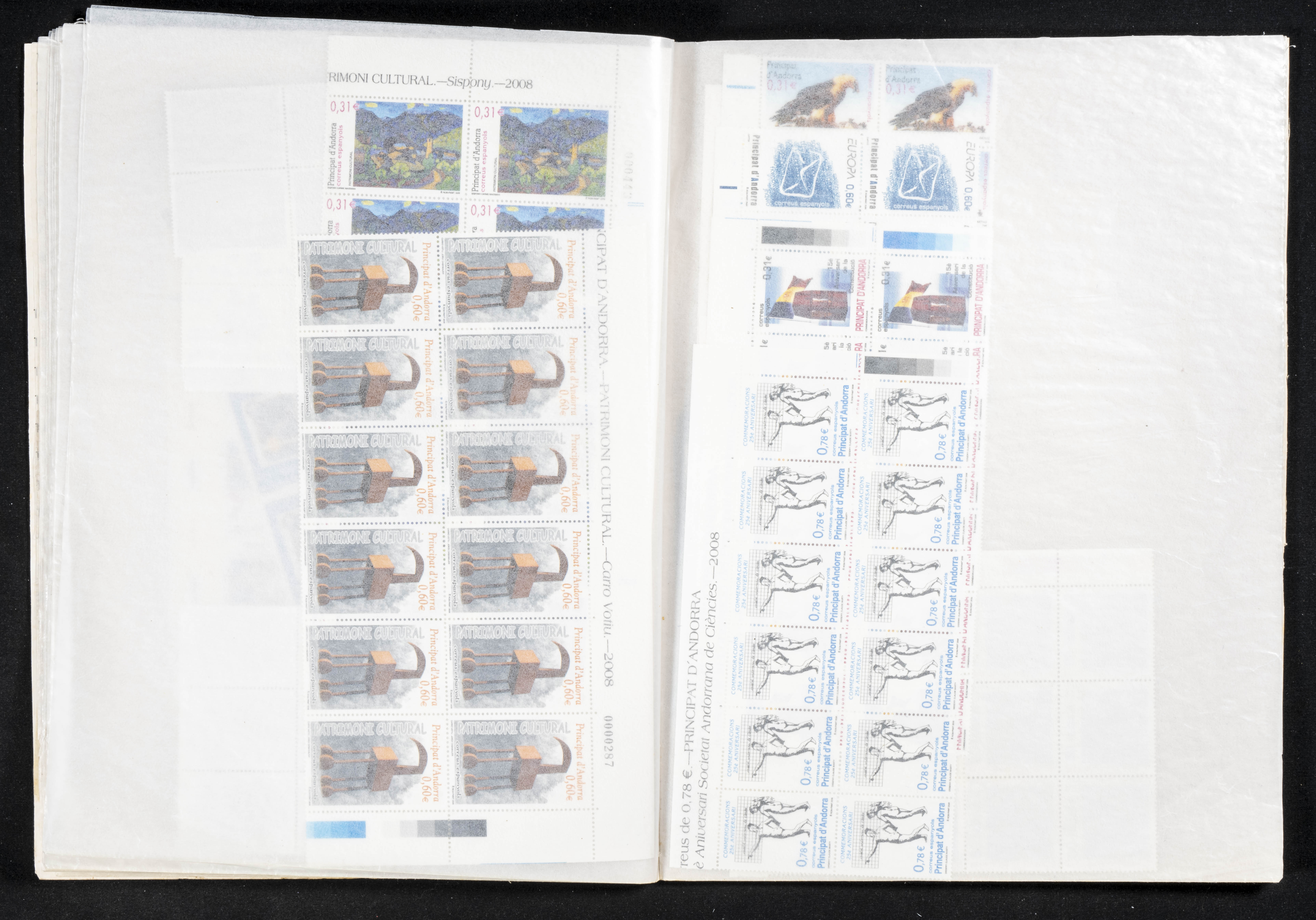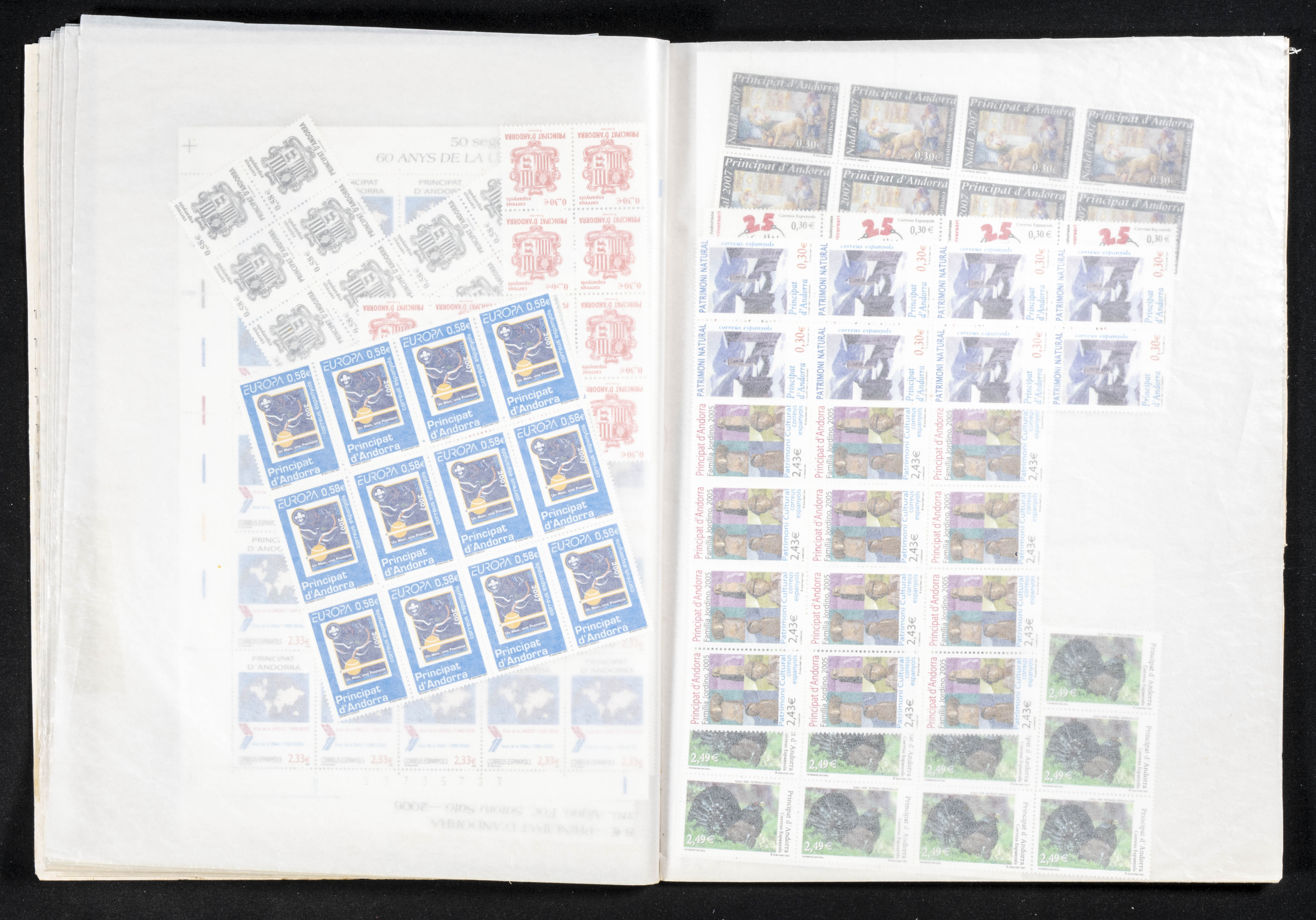 ★★(1978ca). Interesting set-stock of complete series from Spanish Andorra between 1978 and 2009, in new condition and with repetitions of up to fifty units of each (apart from the facial high in pesetas there are +2300 Euros in facial between 2001 and 2009). TO EXAMINE.