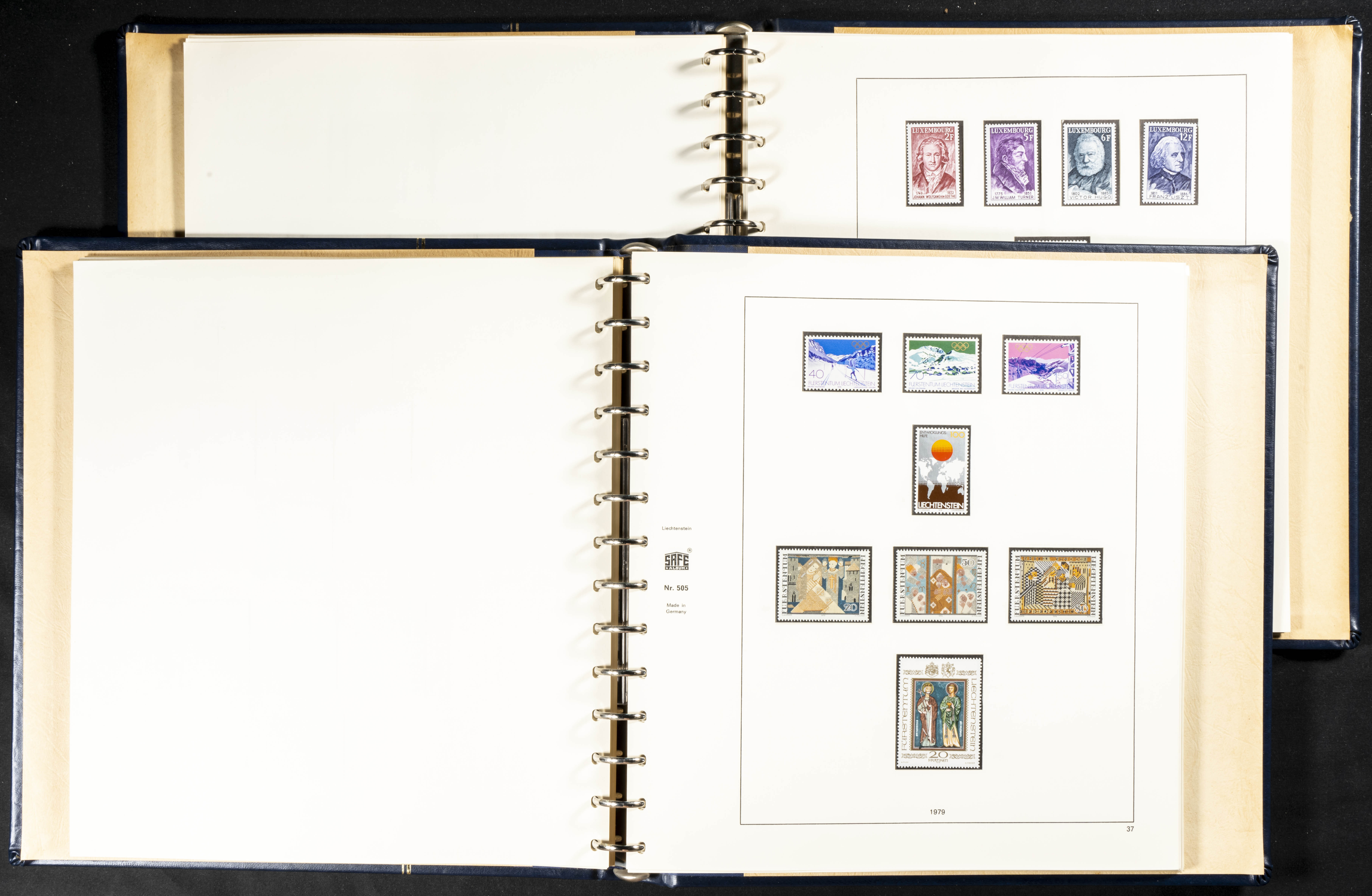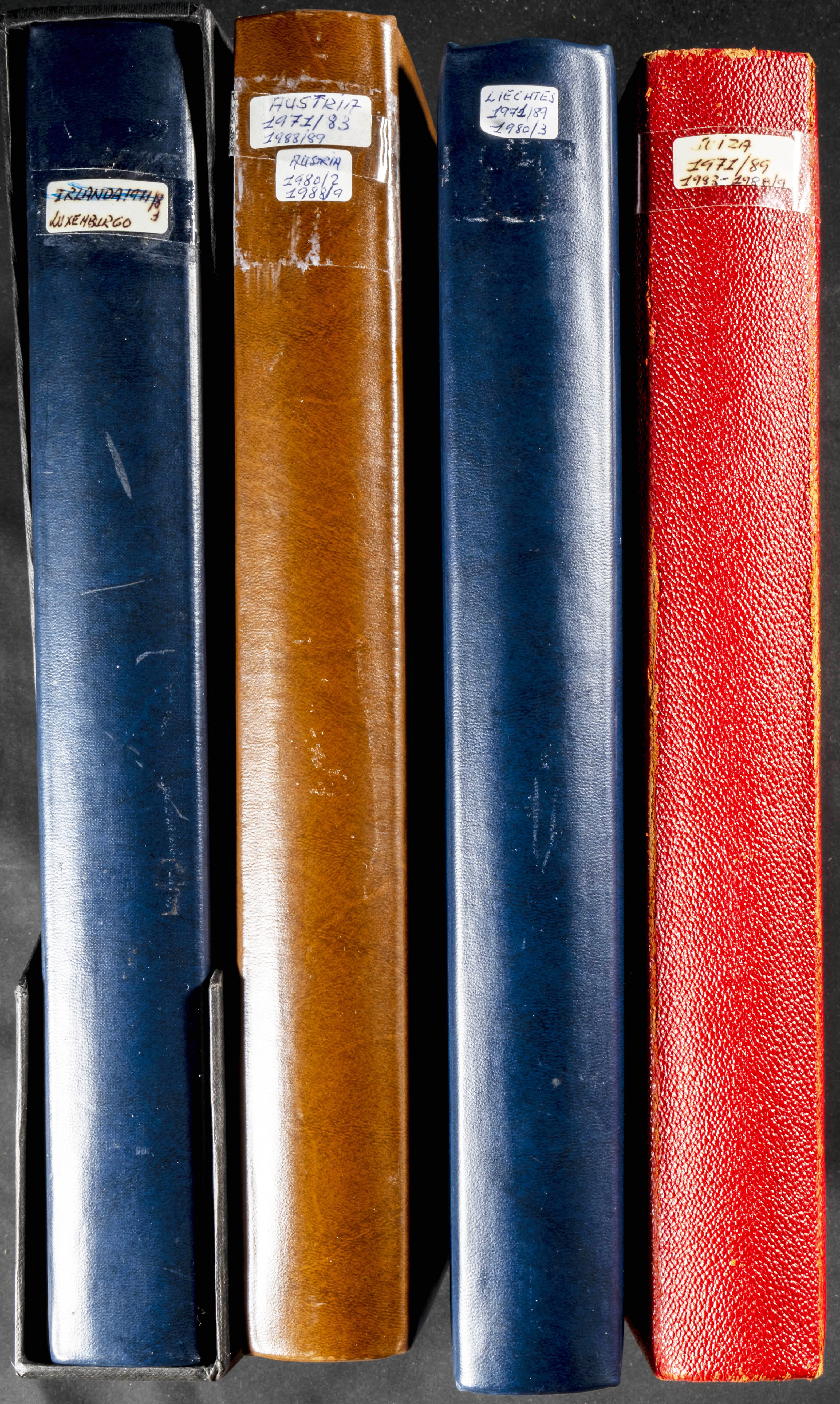English ★★(1971ca). Set of collections from Austria between 1971 and 1983 (includes 1988 and 1989), Liechtenstein between 1971 and 1983 (includes 1986 to 1989), Luxembourg between 1971 and 1983 and Switzerland between 1971 and 1989 (some duplicate years), in new condition without stamps and practically complete (mounted in Safe albums). HIGH CATALOG VALUE. TO EXAMINE.