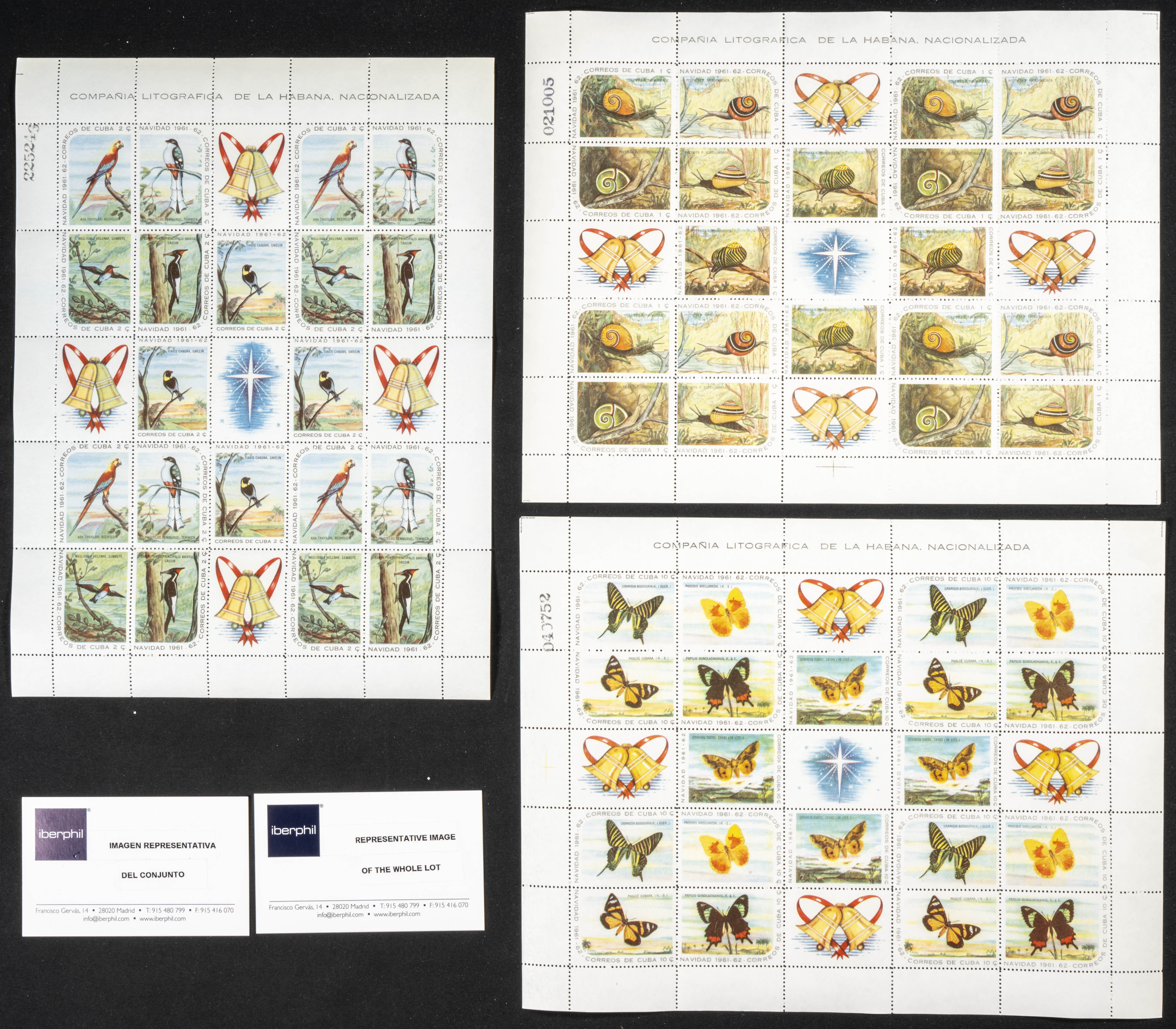 English ★★Yvert 568/82(56). 1961. Set of fifty-six complete Christmas 1962 series from Cuba, in new condition and in complete sheets (generally good quality). TO EXAMINE. Yvert 2016: 1,540 Euros