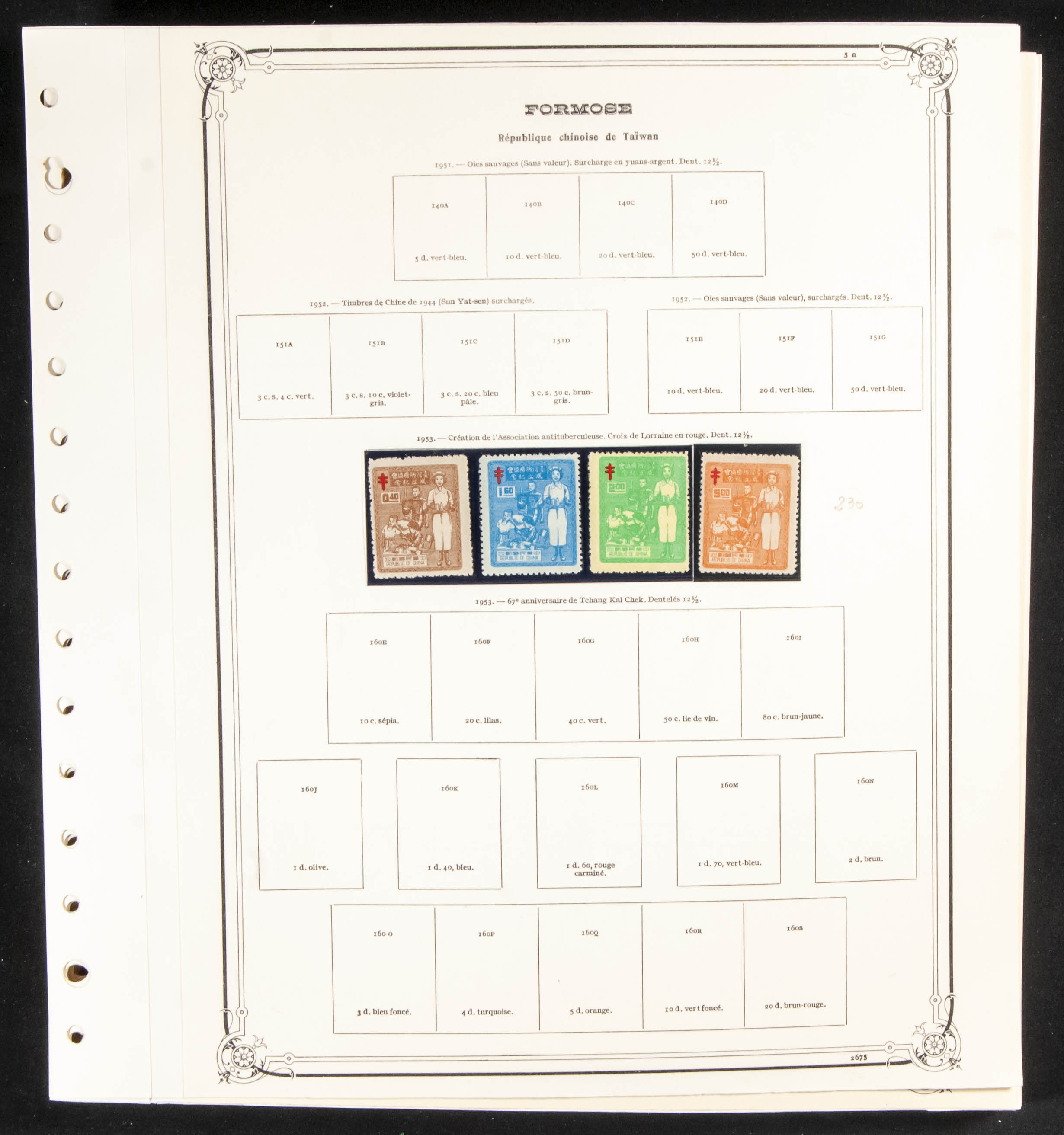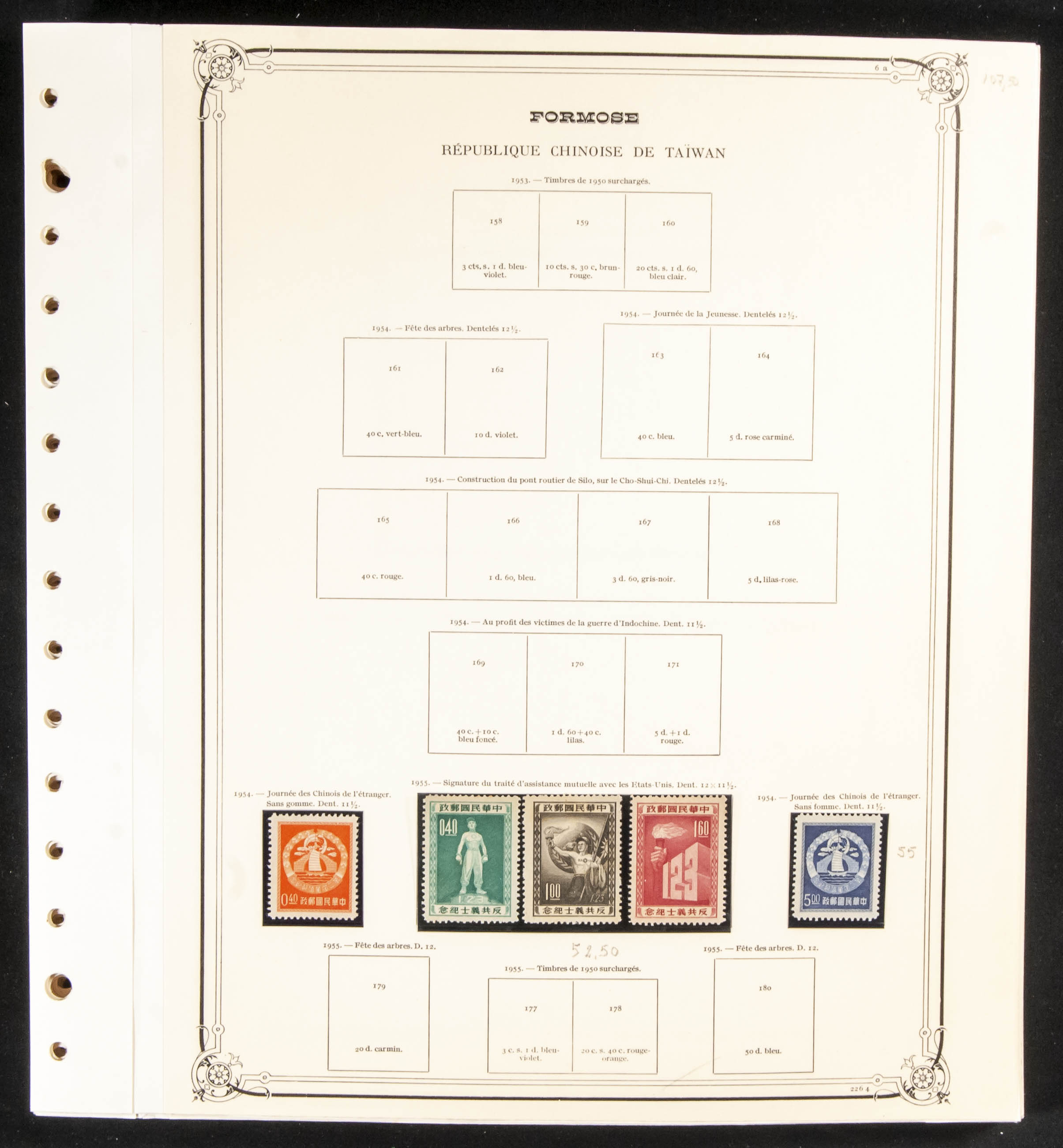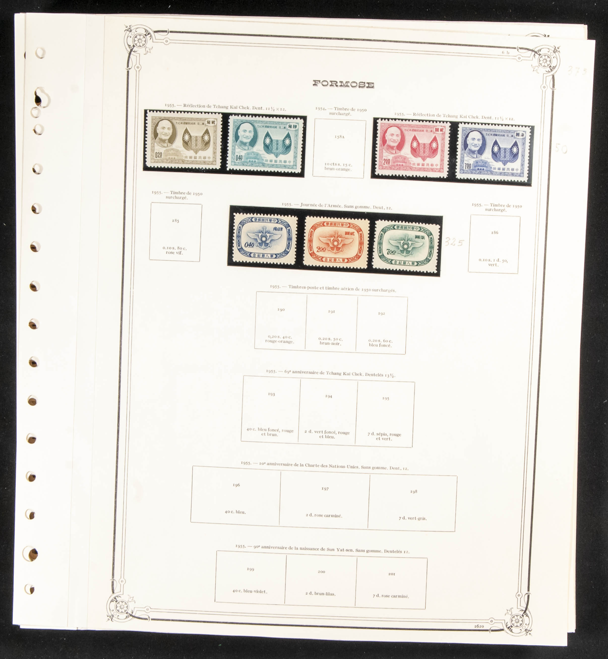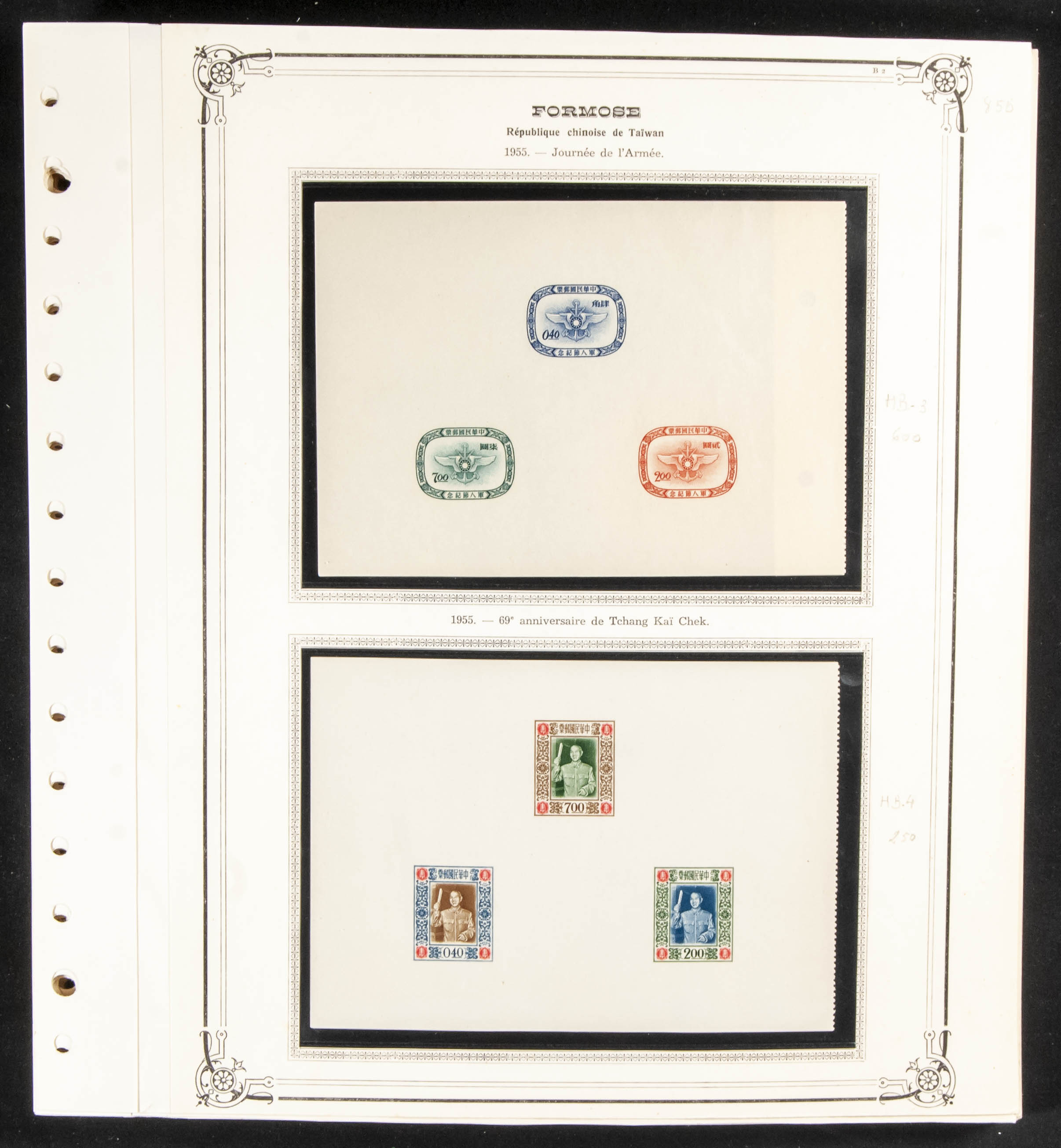 ★★/★(1945ca). Interesting collection from Formosa between 1945 and 2000, in new and very complete form from 1955 and including numerous block sheets, highlighting Army Day 1955 (600 Euros), 69th Anniversary Tchang Kai, Chek (250 Euros), among others. IT IS ESSENTIAL TO EXAMINE. Yvert 2020: +5,500 Euros