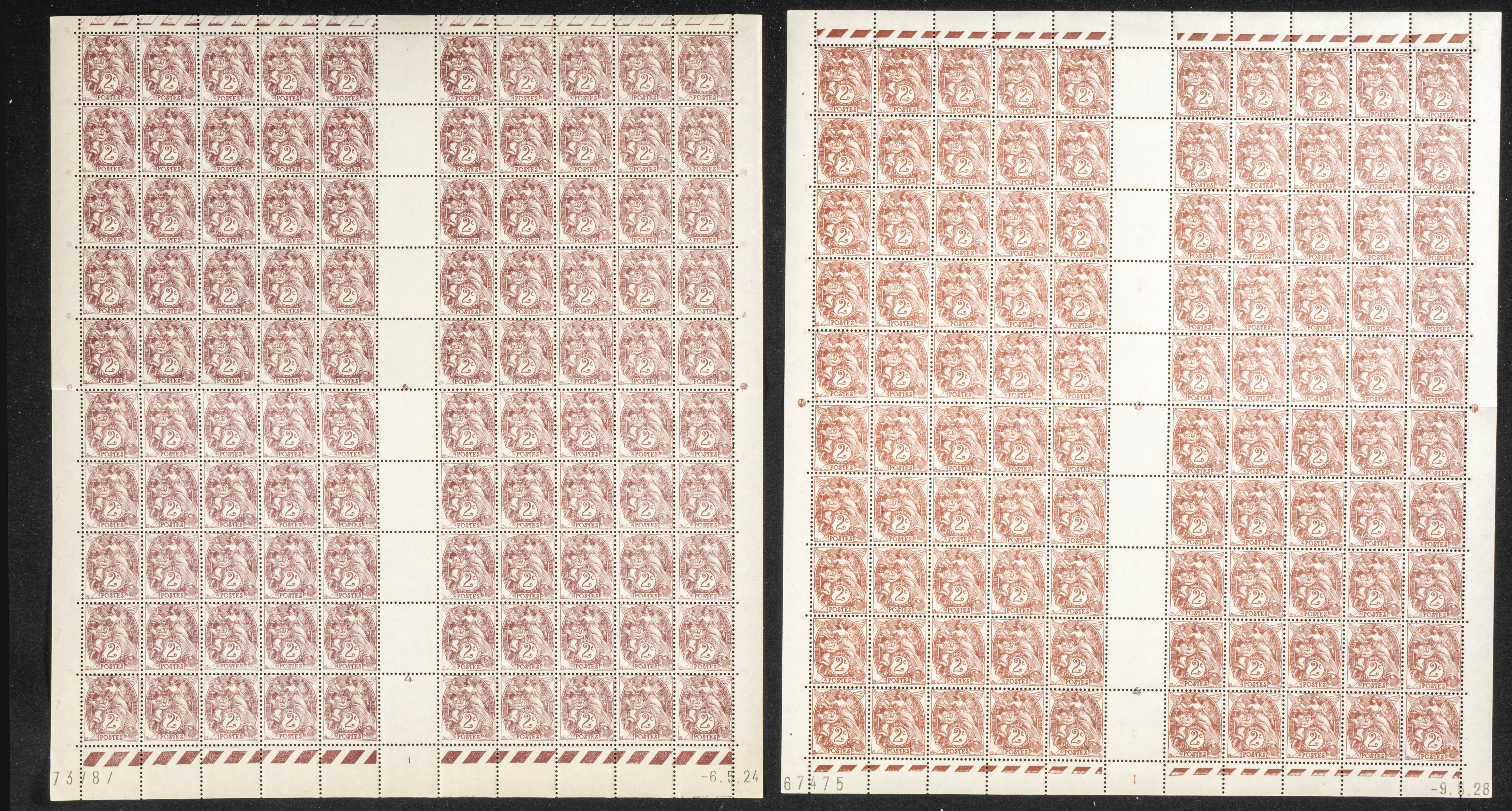 ★★Yvert 108, 108a(200). 1900. Set of two hundred stamps in sheets of 2 cts (two tones) Type Blanc of 1900 from France, new. TO EXAMINE. Yvert 2024: +500 Euros