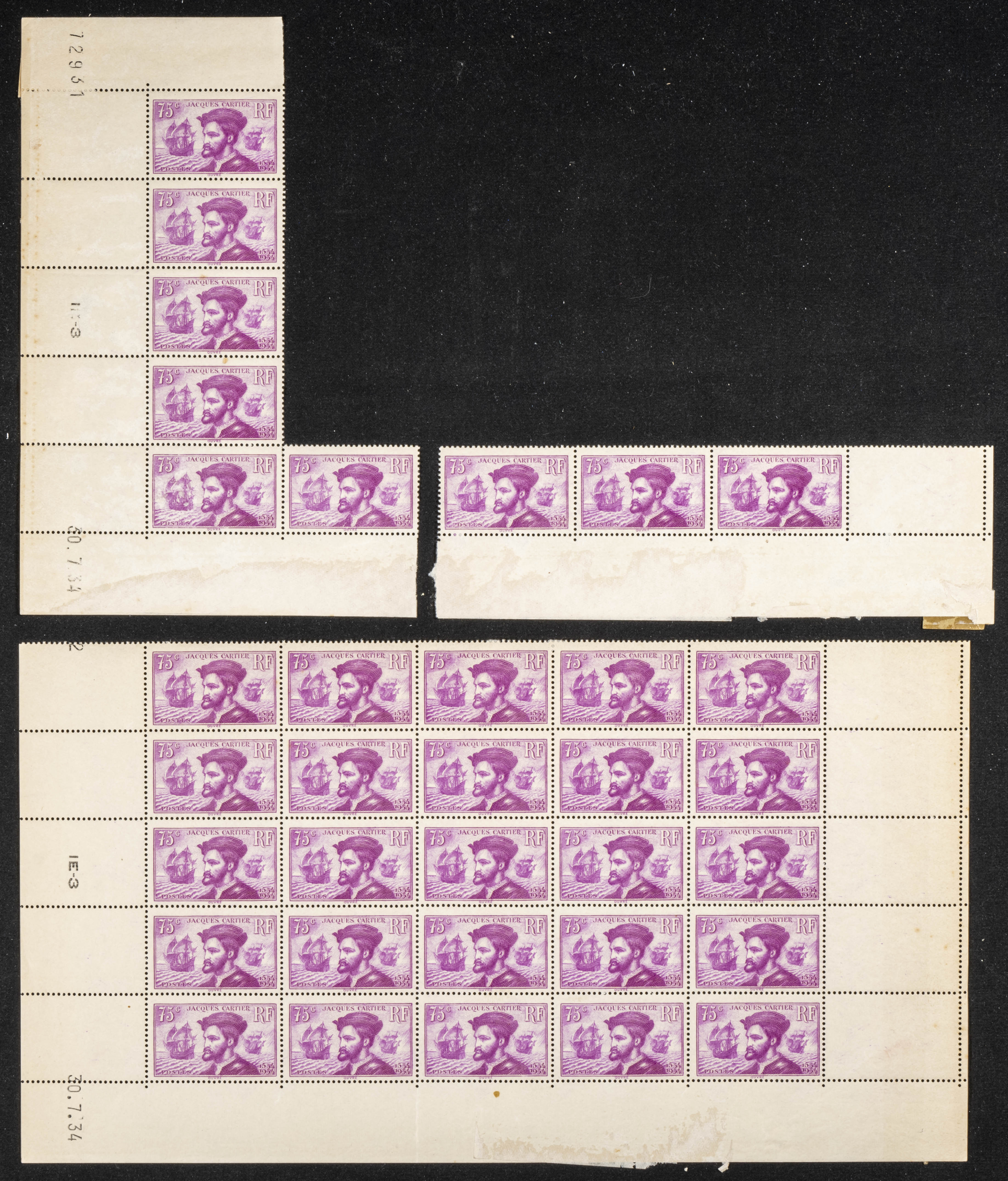 ★★/★Yvert 296(34). 1934. Thirty-four 75 ct lilac pink stamps (Cartier) from France, twenty without stamp fixers and the rest with adhesions. TO EXAMINE. Yvert 2023: 2,648 Euros