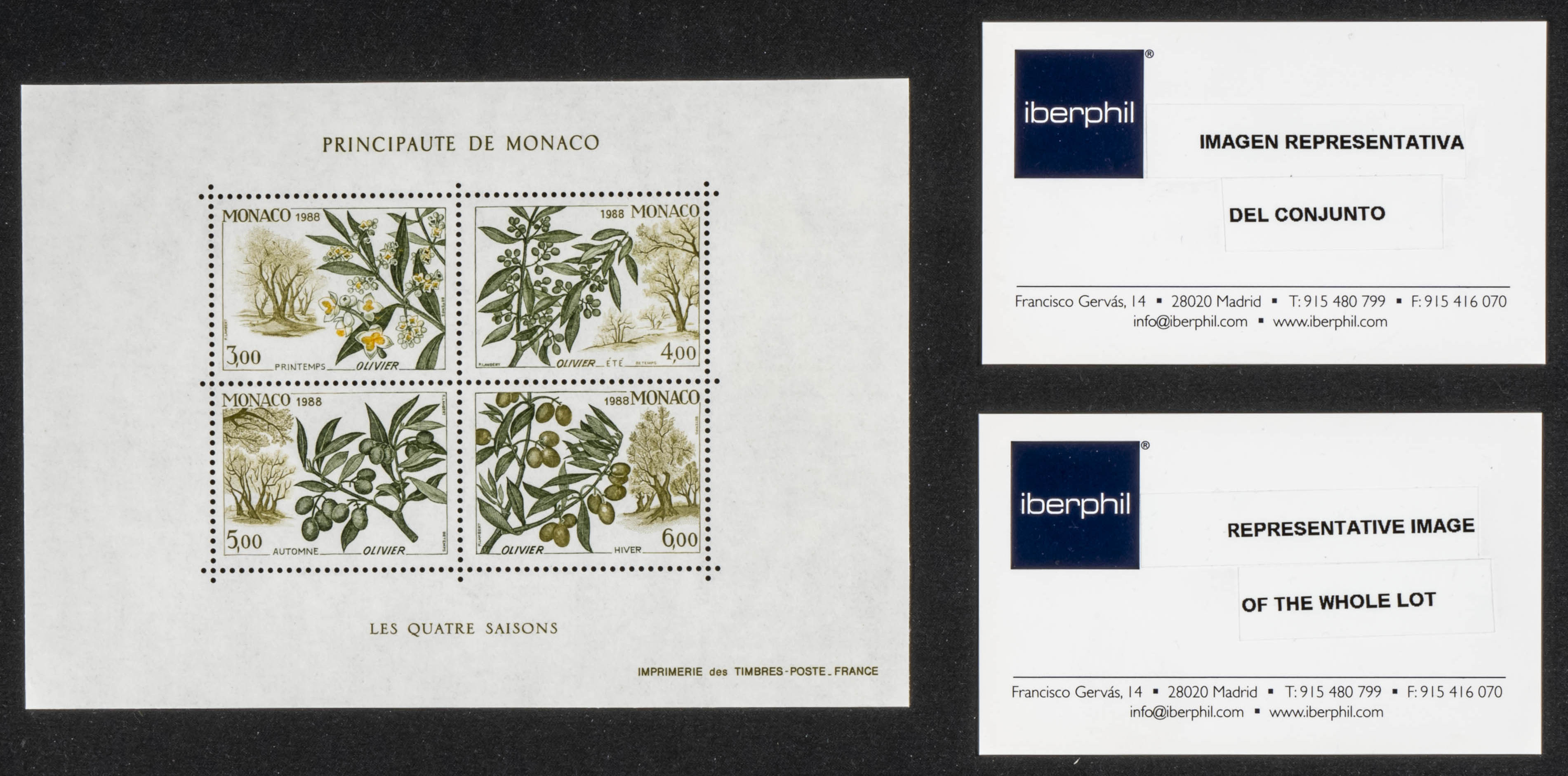 ★★Yvert HB43(44). 1988. Set of forty-four OLIVE block leaves from 1988 from Monaco. TO EXAMINE. Yvert 2023: 792 Euros