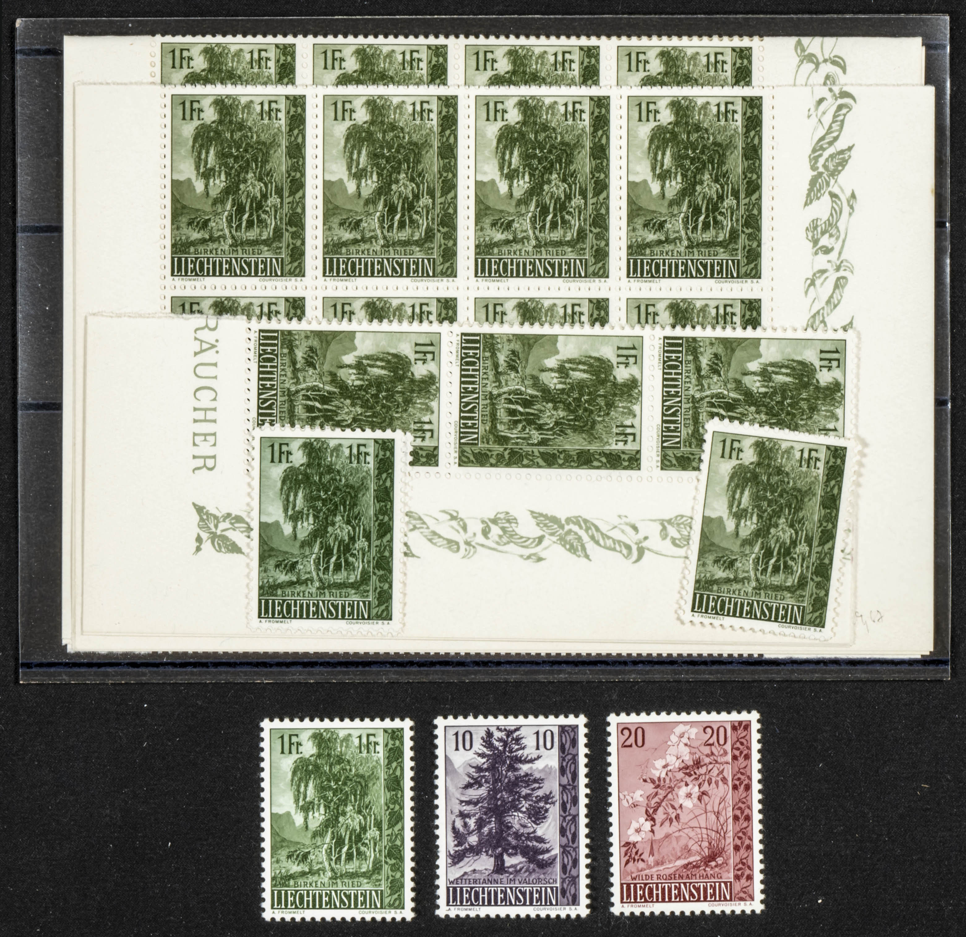 ★★Yvert 319/21(26). 1957. Twenty-six complete series of TREES from 1957 from Liechtenstein. MAGNIFICENT. Yvert 2019: 572 Euros