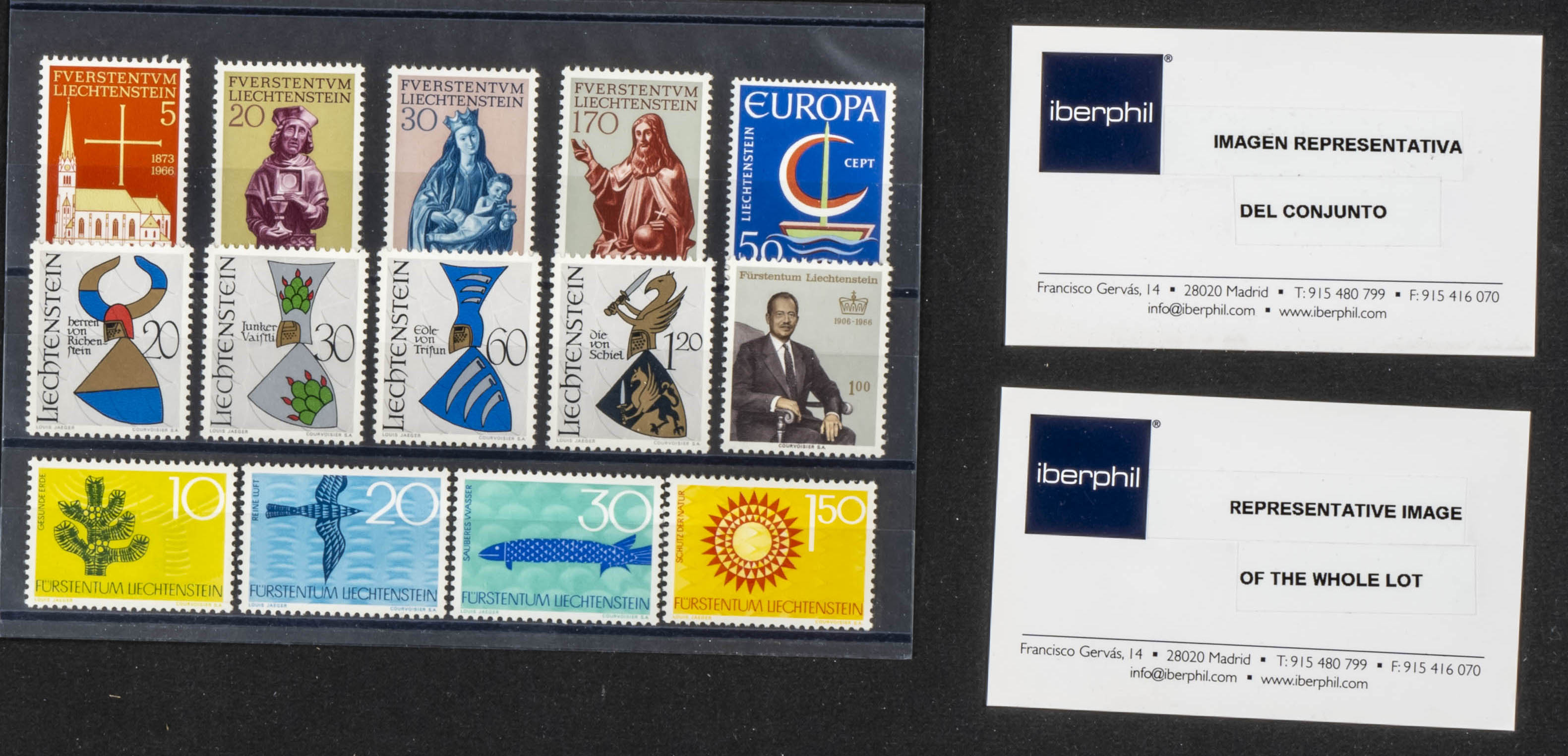 ★★Yvert 408/21(134). 1966. Set of one hundred and thirty-four complete 1966 Liechtenstein years (mounted on tokens). TO EXAMINE. Yvert 2019: 1,085 Euros