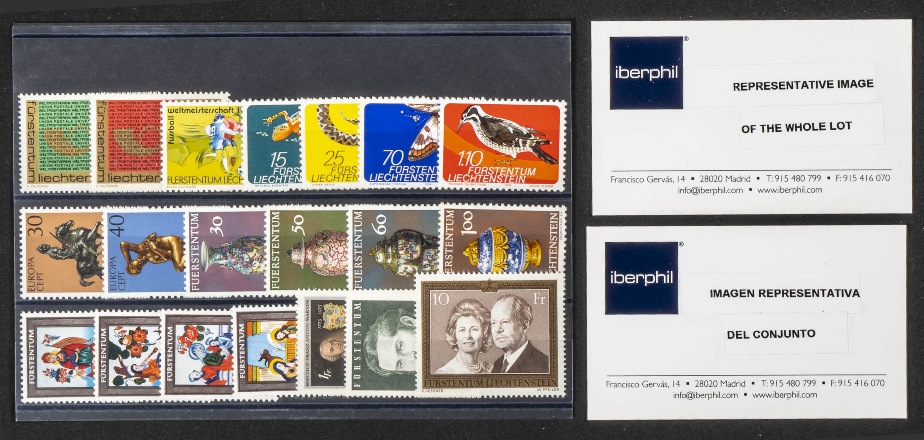English ★★Yvert 543/62(40). 1974. Set of forty complete 1974 years from Liechtenstein (mounted on tokens). TO EXAMINE. Yvert 2019: 1,328 Euros
