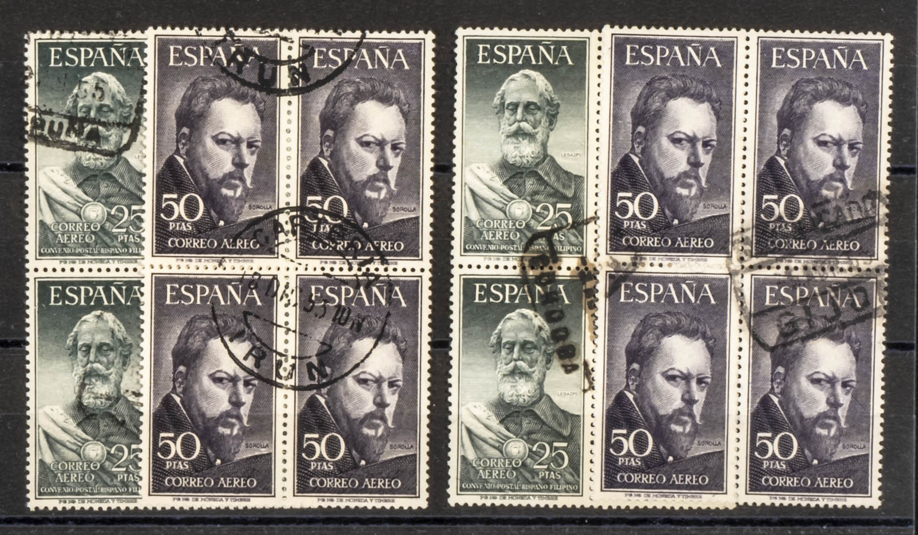 1124/25(8). 1953. Eight complete series in two blocks of four, in used condition. LEGAZPI AND SOROLLA (spectacular ensemble). TO EXAMINE. Edifil 2024: 480 Euros