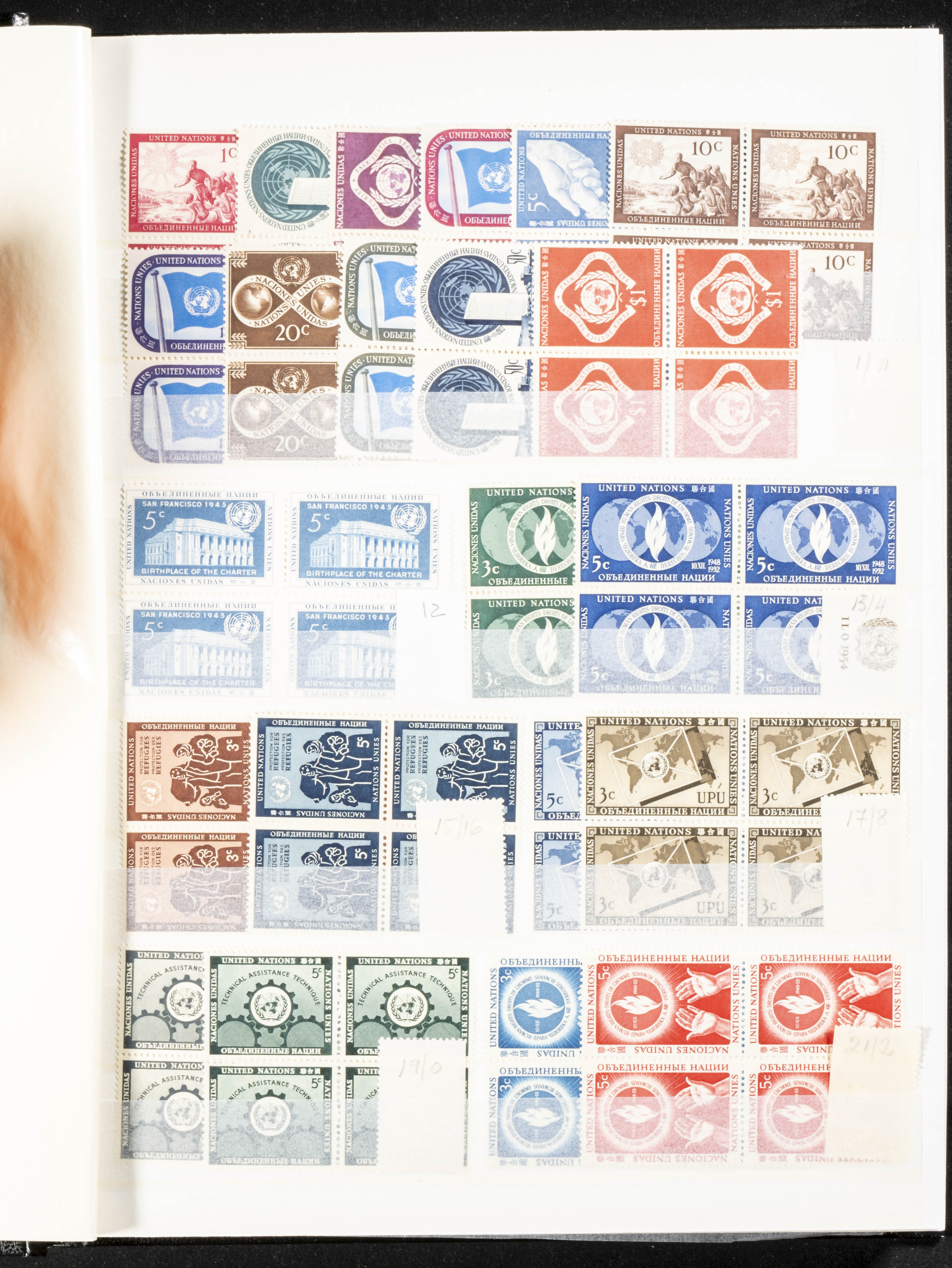 ★★(1951ca). United Nations Collection (New York Office in block of four between 1951 and 1985, in new and all labeled with catalog number), includes collection of the United Nations Administration in Kosovo between 2000 and 2012, in new. TO EXAMINE.