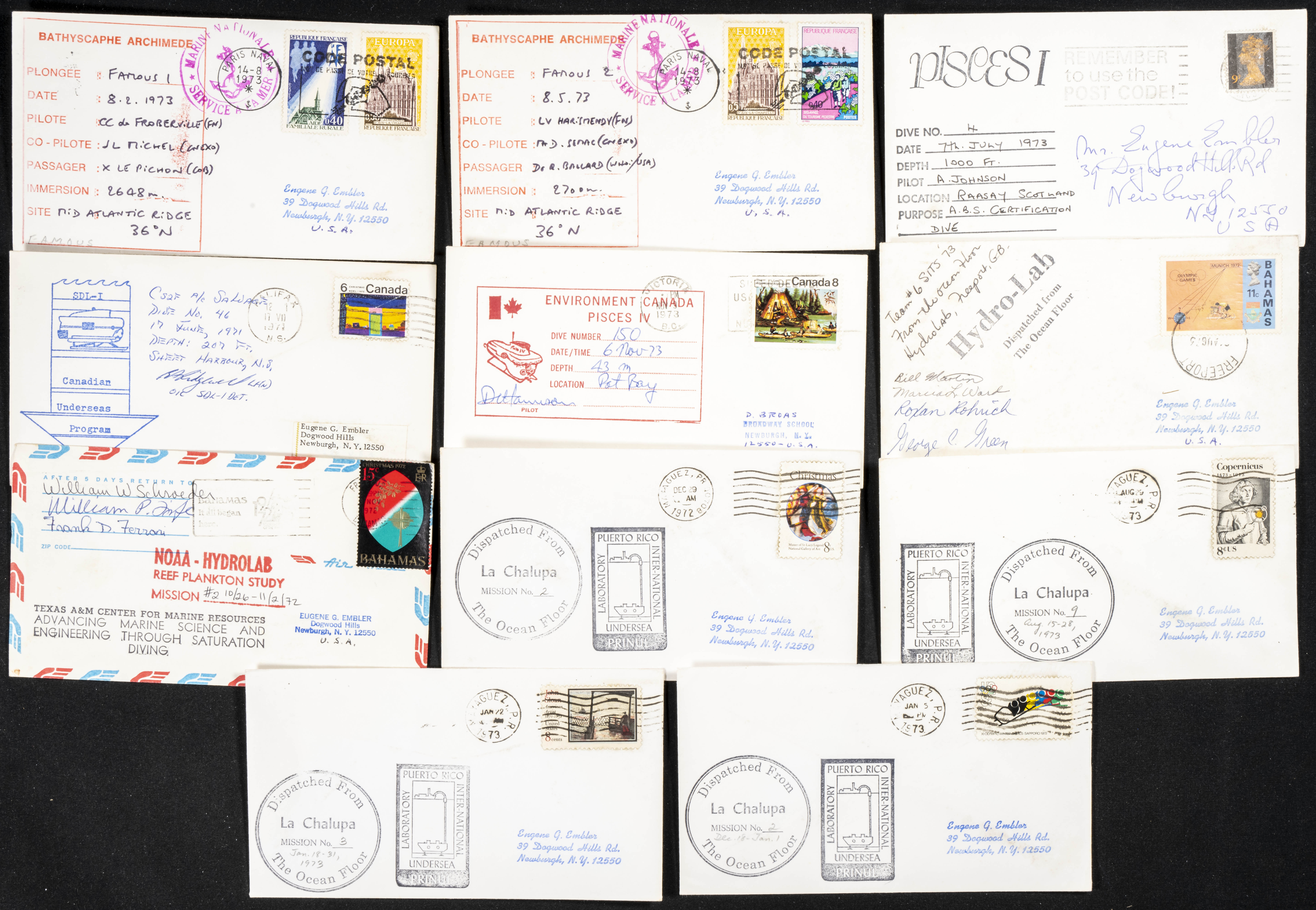 (1971ca). Interesting set of eleven letters from various countries, circulated between 1971 and 1973 with marks from Bathyscaphes and submarine bases, highlighting two from the Archimede bathyscaphe, of the French Navy. TO EXAMINE.