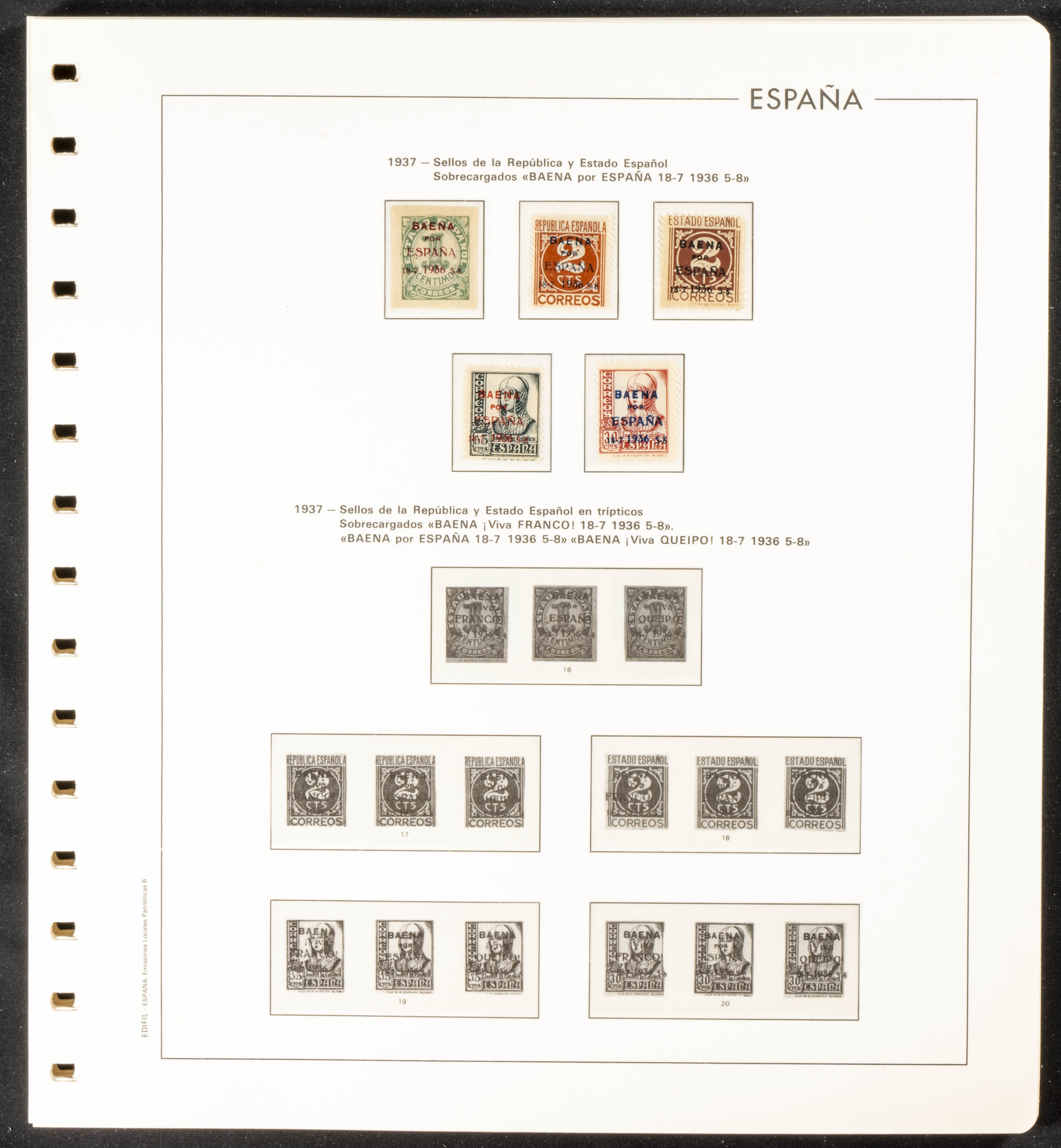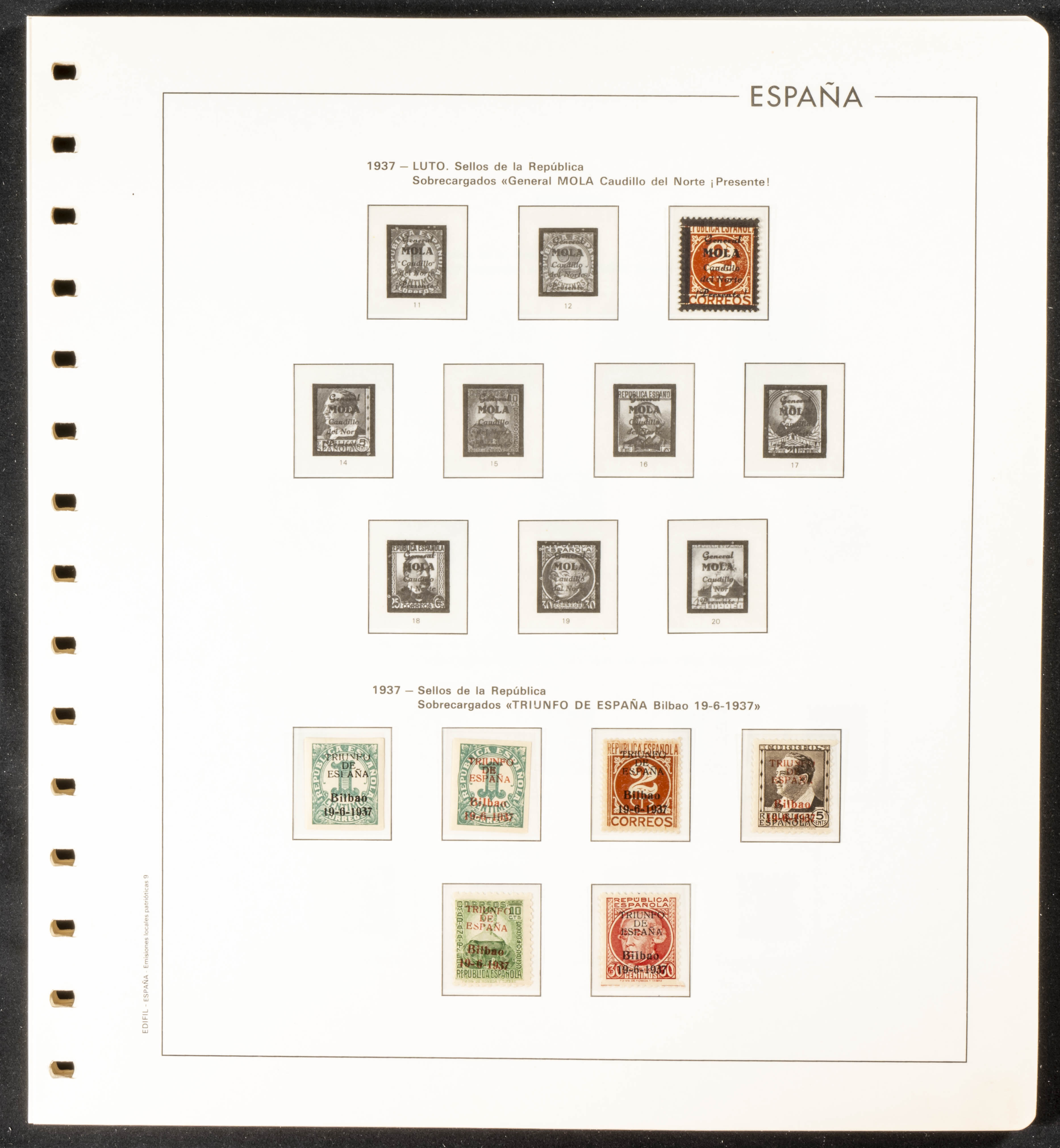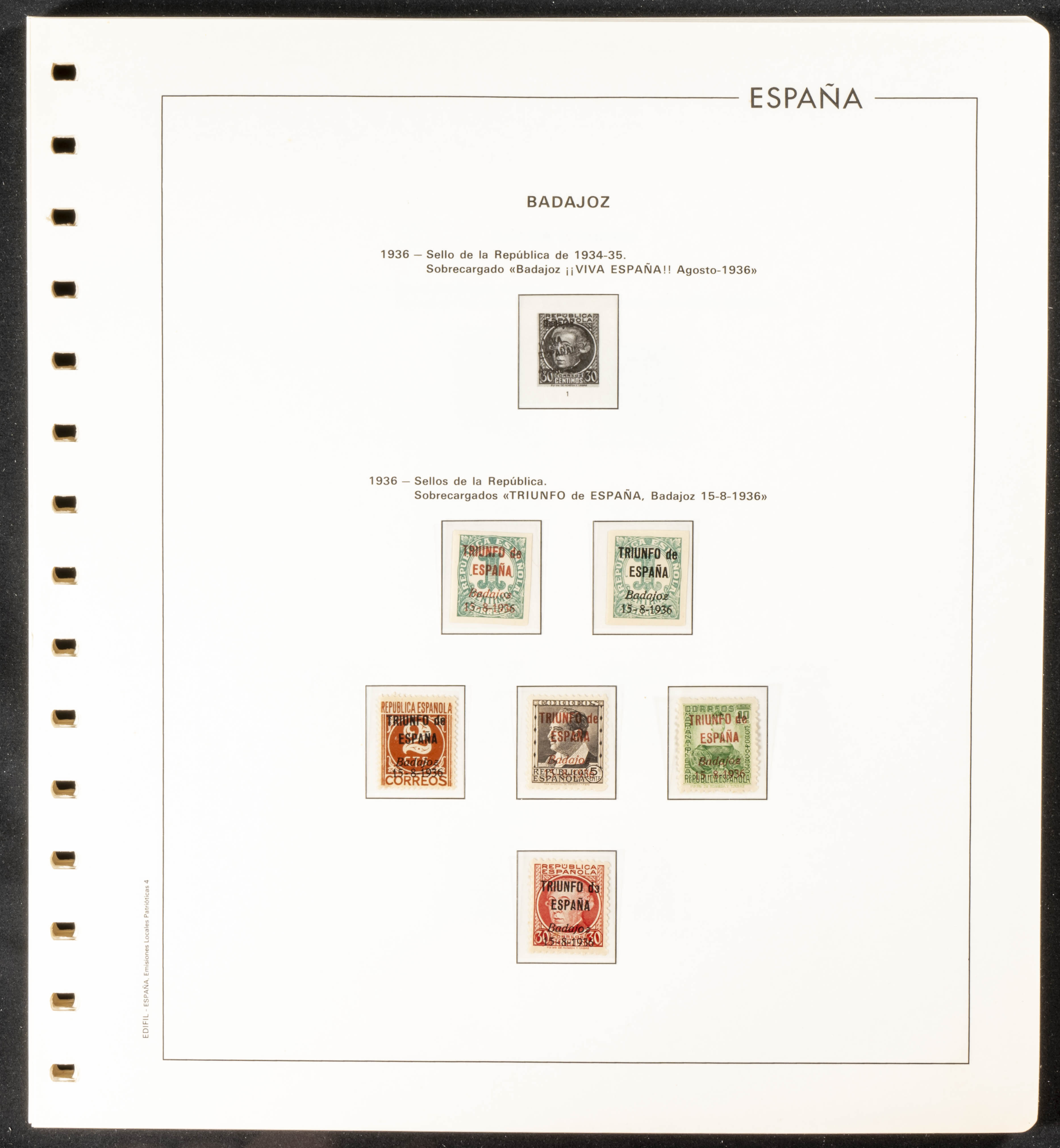 Interesting start to the collection of Patriotic Local Emissions with dozens of complete series, some loose stamps and new block sheets, mounted on Edifil sheets intended for this purpose. TO EXAMINE.