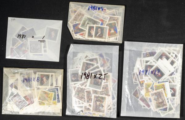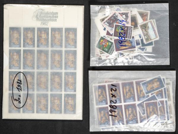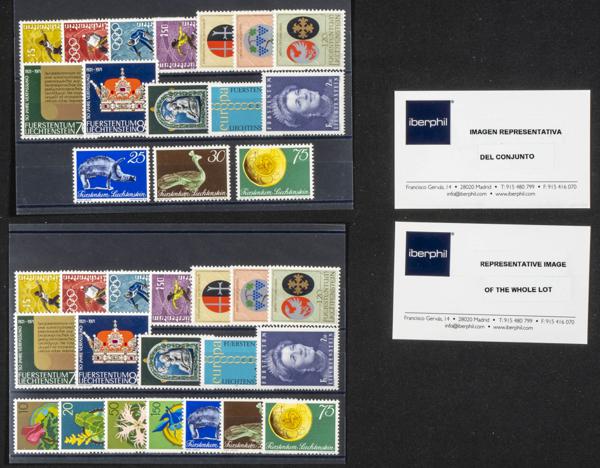 ★★Yvert 705/31(55). 1981. Complete fifty-five year set of 1981 (without block sheet stamps) from Liechtenstein (in mixed envelopes). TO EXAMINE. Yvert 2019: 1,333 Euros