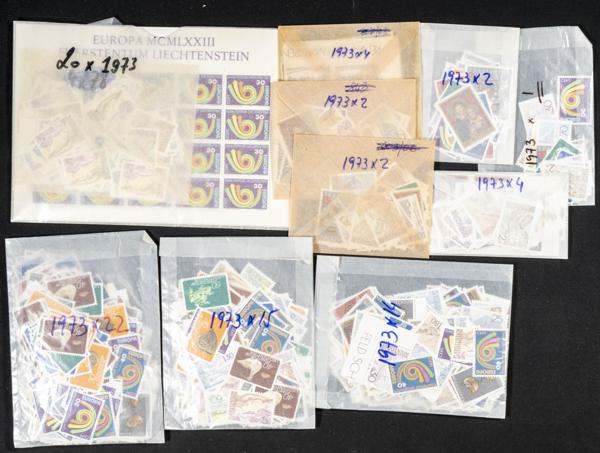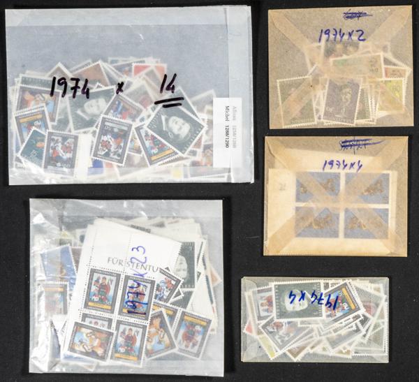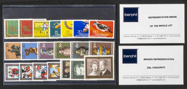 ★★Yvert 543/62(46). 1974. Set of forty-six complete 1974 years from Liechtenstein (in mixed envelopes). TO EXAMINE. Yvert 2019: 1,527 Euros