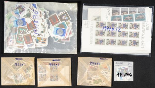★★Yvert 608/32(59). 1977. Fifty-nine complete 1977 set from Liechtenstein (in mixed envelopes). TO EXAMINE. Yvert 2019: 1,593 Euros