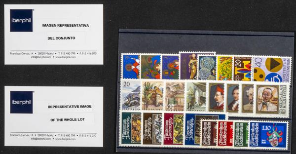 ★★Yvert 608/32(29). 1977. Set of twenty-nine complete 1977 years from Liechtenstein (mounted on tokens). TO EXAMINE. Yvert 2019: 797.5 Euros