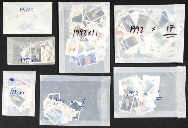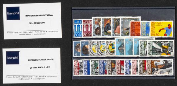 ★★Yvert 974/94(33). 1992. Complete thirty-three year set from 1992 (does not include block sheet stamps) from Liechtenstein (in mixed envelopes). TO EXAMINE. Yvert 2019: 1,174 Euros