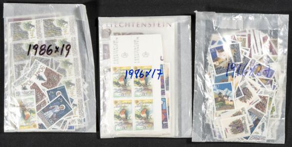 ★★Yvert 834/53(63). 1986. Set of sixty-three complete years of 1986 from Liechtenstein (in mixed envelopes). TO EXAMINE. Yvert 2019: 2,097 Euros