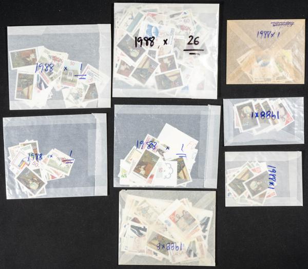 ★★Yvert 878/00(40). 1988. Complete forty-year set of 1988 (except block sheet stamps) from Liechtenstein (in mixed envelopes). TO EXAMINE. Yvert 2019: 1,480 Euros