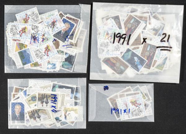 ★★Yvert 952/73(31). 1991. Liechtenstein 1991 Complete Thirty-One Year Set (in mixed envelopes). TO EXAMINE. Yvert 2019: 1,269 Euros