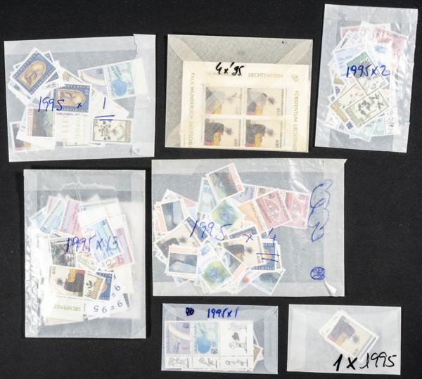 ★★Yvert 1044/64(25). 1995. Liechtenstein 1995 Complete Twenty-Five Year Set (in mixed envelopes). TO EXAMINE. Yvert 2019: 1,525 Euros