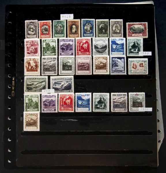 ★★/★(1921ca). Interesting set-collection from Liechtenstein between 1921 and 2009, in new (most) and used and highlighting series from 1921, 1930, Vaduz Castle, Zeppelin, etc., most with stamp fixings until 1939. HIGHEST CATALOG VALUE. IT IS ESSENTIAL TO EXAMINE.