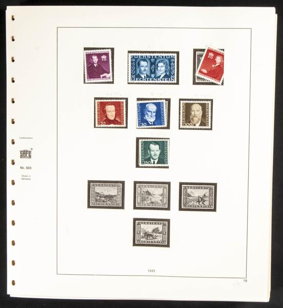 ★★(1943ca). Interesting and very complete collection from Liechtenstein between 1943 and 1985, in new condition and practically without stamps and including most of the block sheets and some service series (mounted in a Safe album). HIGHEST CATALOG VALUE. TO EXAMINE.