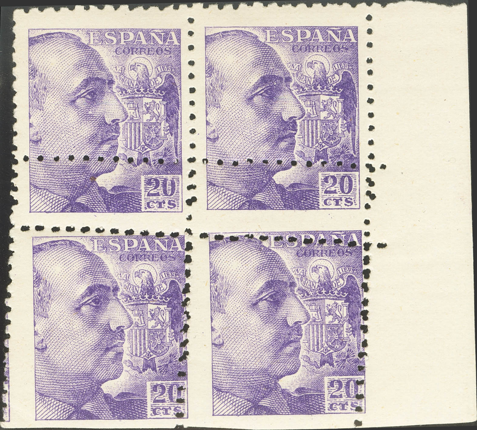 ★★/★ 922dd(4). 1939. 20 cts violet, block of four. DOUBLE TOOTH. MAGNIFICENT.