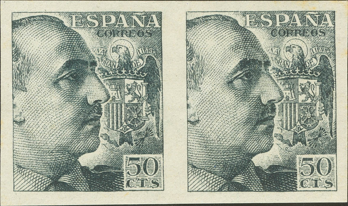 ★★ 1053s(2). 1949. 50 cts gray blue, pair. WITHOUT TOOTH. MAGNIFICENT AND UNCATALOGED. Cert. COMEX.