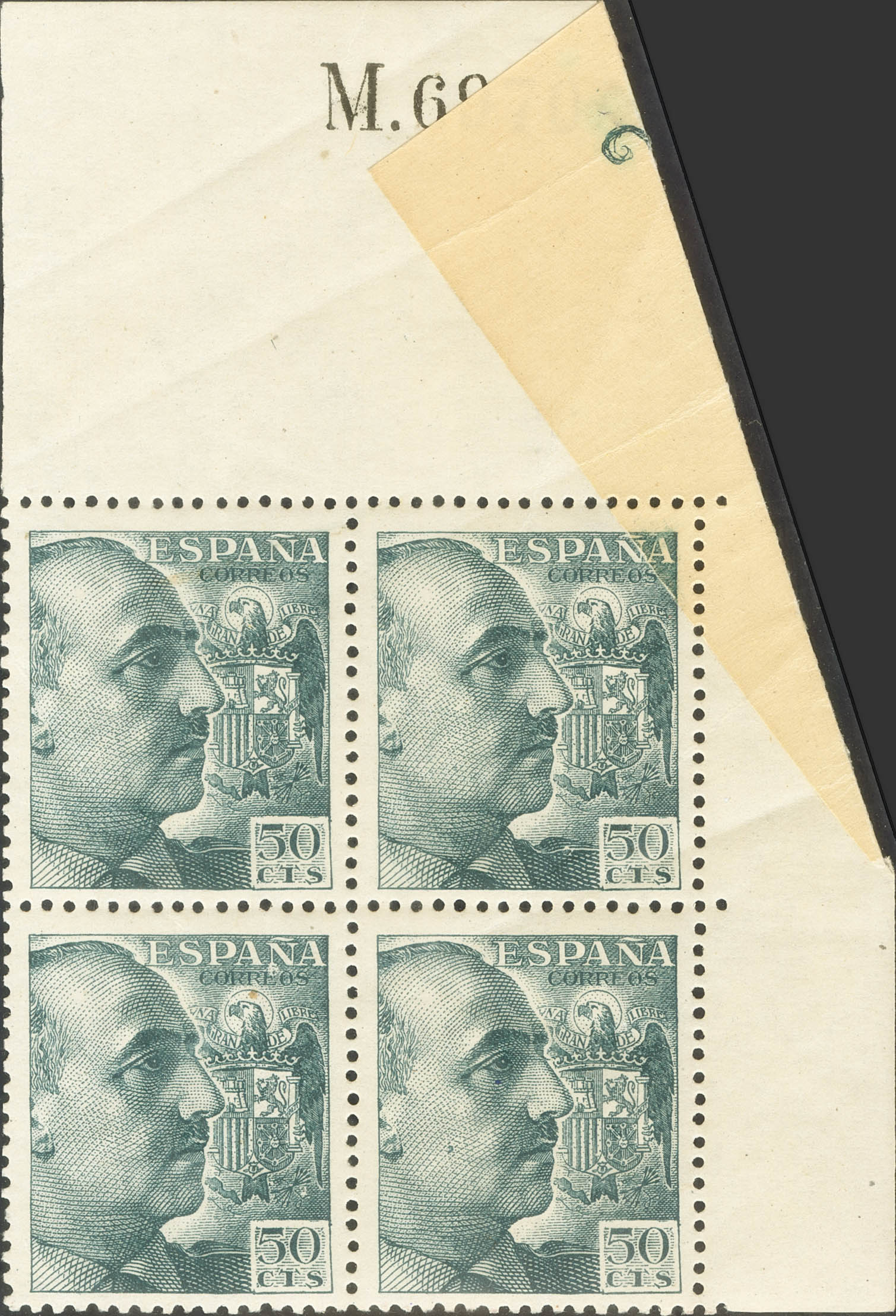★★ 1153(4). 1949. 50 cts gray, block of four. A PARTIAL PRINTING stamp BY PAPER FOLD. MAGNIFICENT.