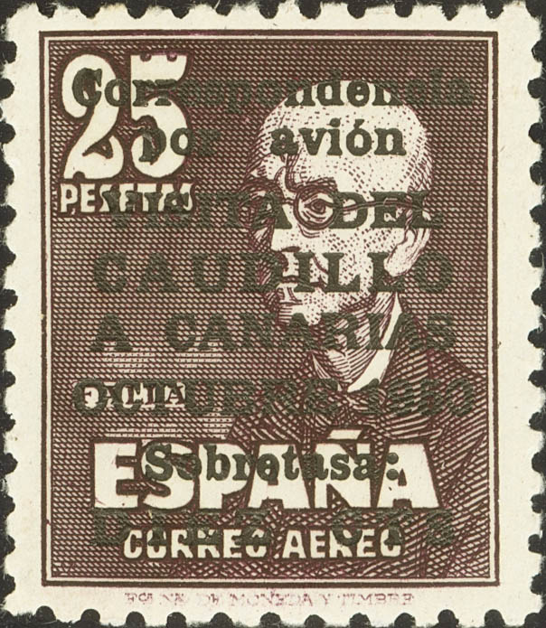 ★★ 1083. 1950. CAUDILLO TO THE CANARY ISLANDS WITHOUT NUMBER. Excellent centering. MAGNIFICENT. Cert. EMF. Edifil 2023: 4,000 Euros