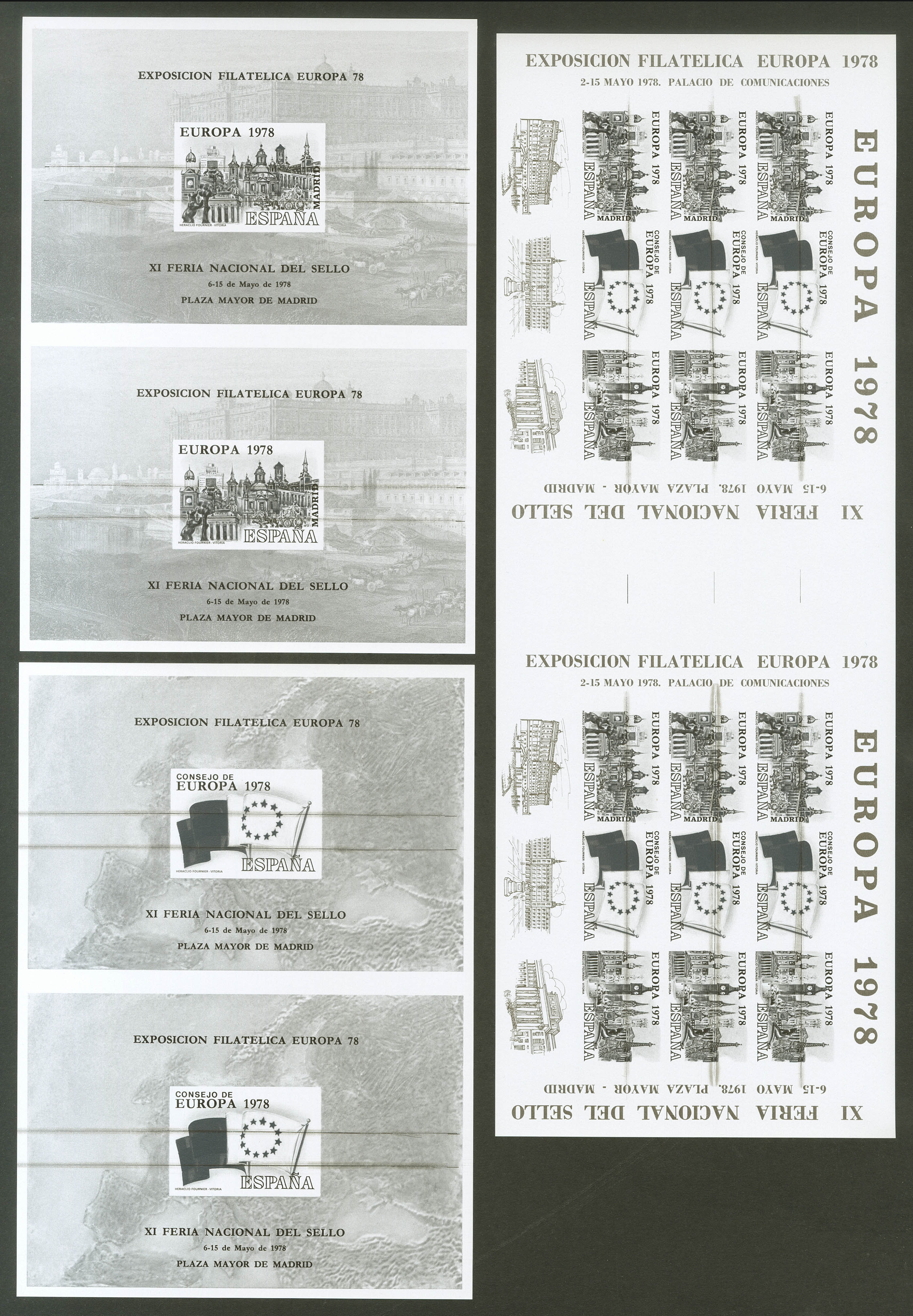 ★★ 60/61. 1978. Set of two souvenir sheets and one EUROPA 1978 promotional sheet, both in pairs, printed in black and unused. MAGNIFICENT AND RARE.