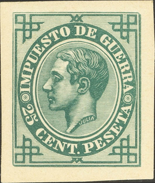 (★) 185P. 1876. 25 cts green. PUNCH TEST. MAGNIFICENT AND RARE. (Gálvez IG43)
