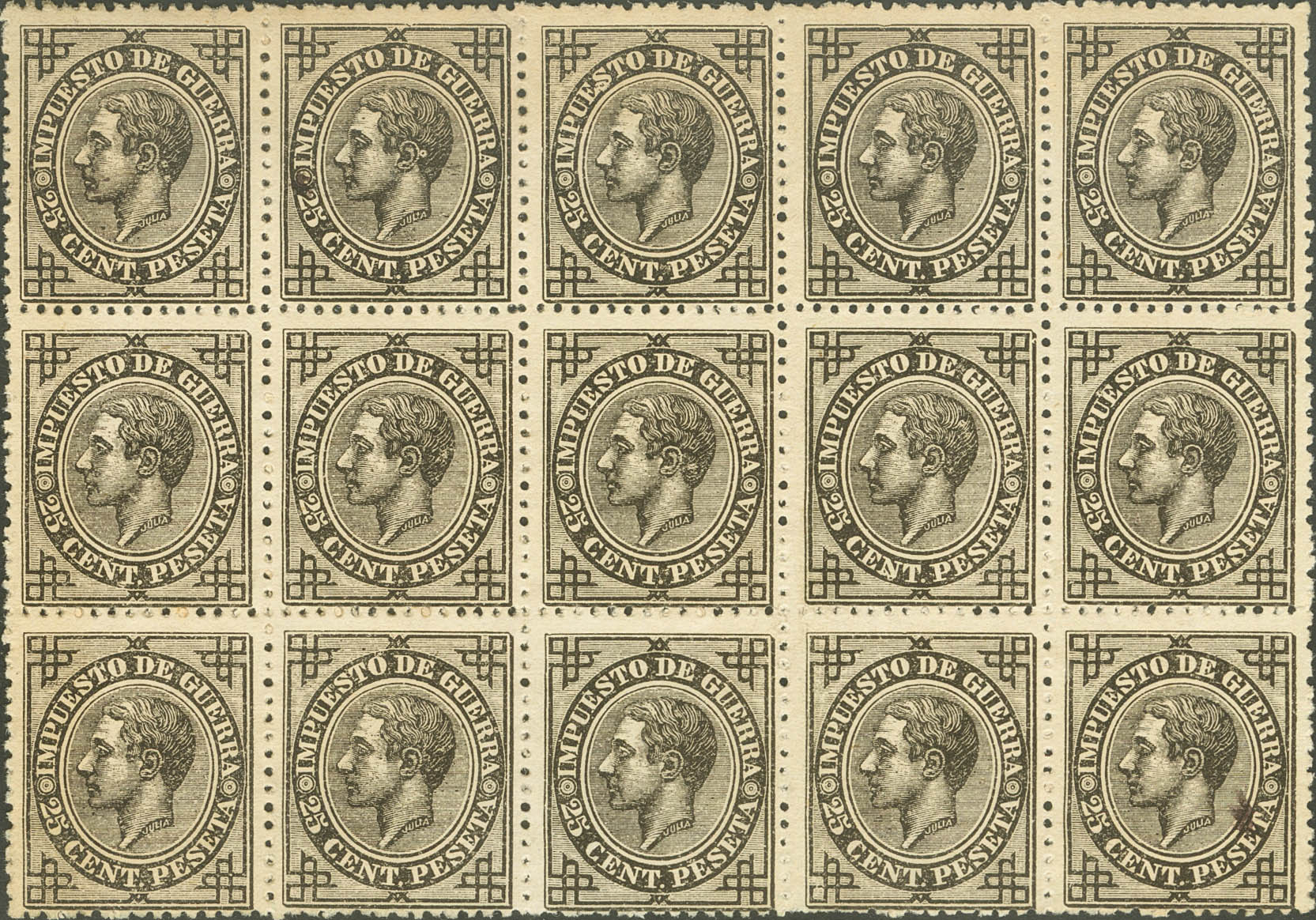 (★) 185(15). 1876. 25 cts black, block of fifteen stamps. MAGNIFICENT AND VERY RARE, ONE OF THE GREATEST KNOWN.
