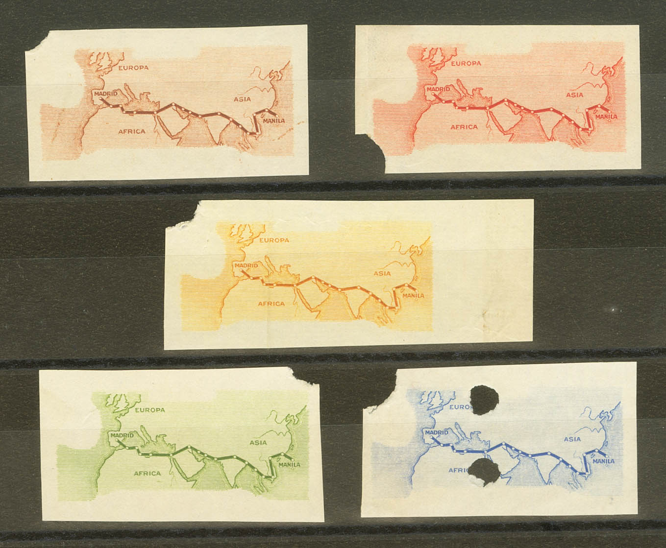 (★)1926. Complete series, five values. CENTER COLOR TESTS, with holes in the corner (except the blue color which is continuous). MAGNIFICENT AND RARE.