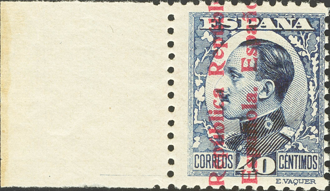 ★★ NE25. 1931. 40 cts blue, leaf edge (usual centering). NOT ISSUED. MAGNIFICENT AND SPECTACULAR. Edifil 2022: +435 Euros