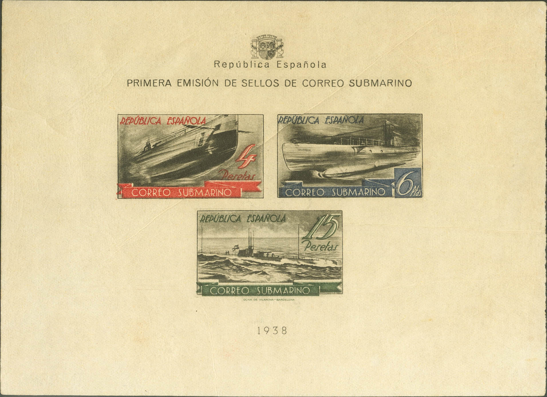 ★★ 781ns. 1938. Block sheet (original paper folds). UNTOOTHED and Nº000000. MAGNIFICENT AND RARE. Cert. EMF. Edifil 2024: 5,100 Euros