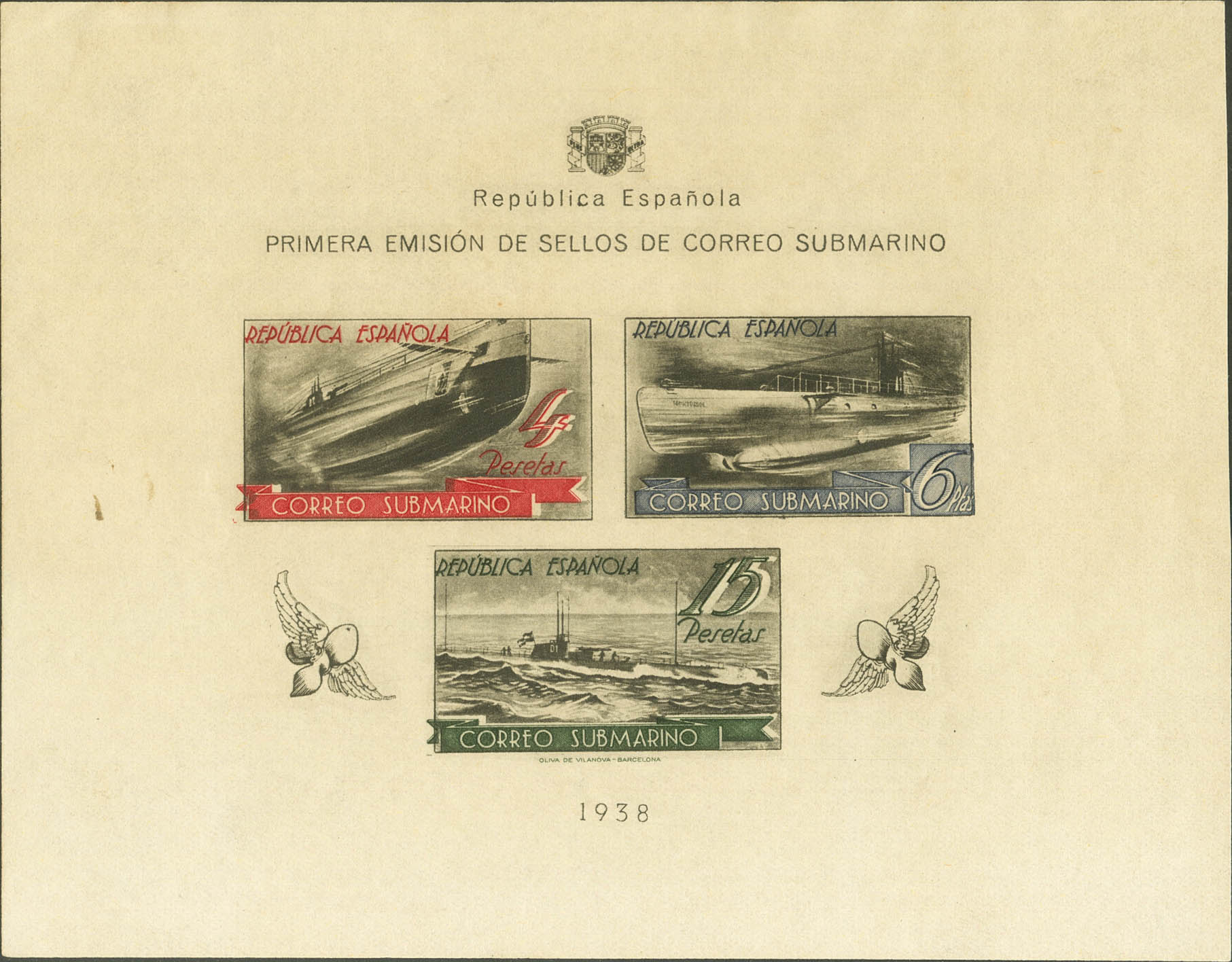 English ★★ 781sa. 1938. Block sheet. UNTOOTHED, with decorations and Nº000000. MAGNIFICENT AND RARE. Cert. EMF. Edifil 2024: 5,100 Euros