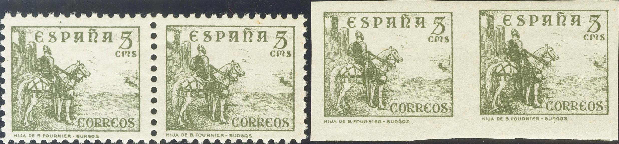 ★★ 816ec(2), 816ecs(2). 1937. 5 cts green, two pairs (toothed and untoothed). COLOR CHANGES. MAGNIFICENT. Edifil 2021: 272 Euros
