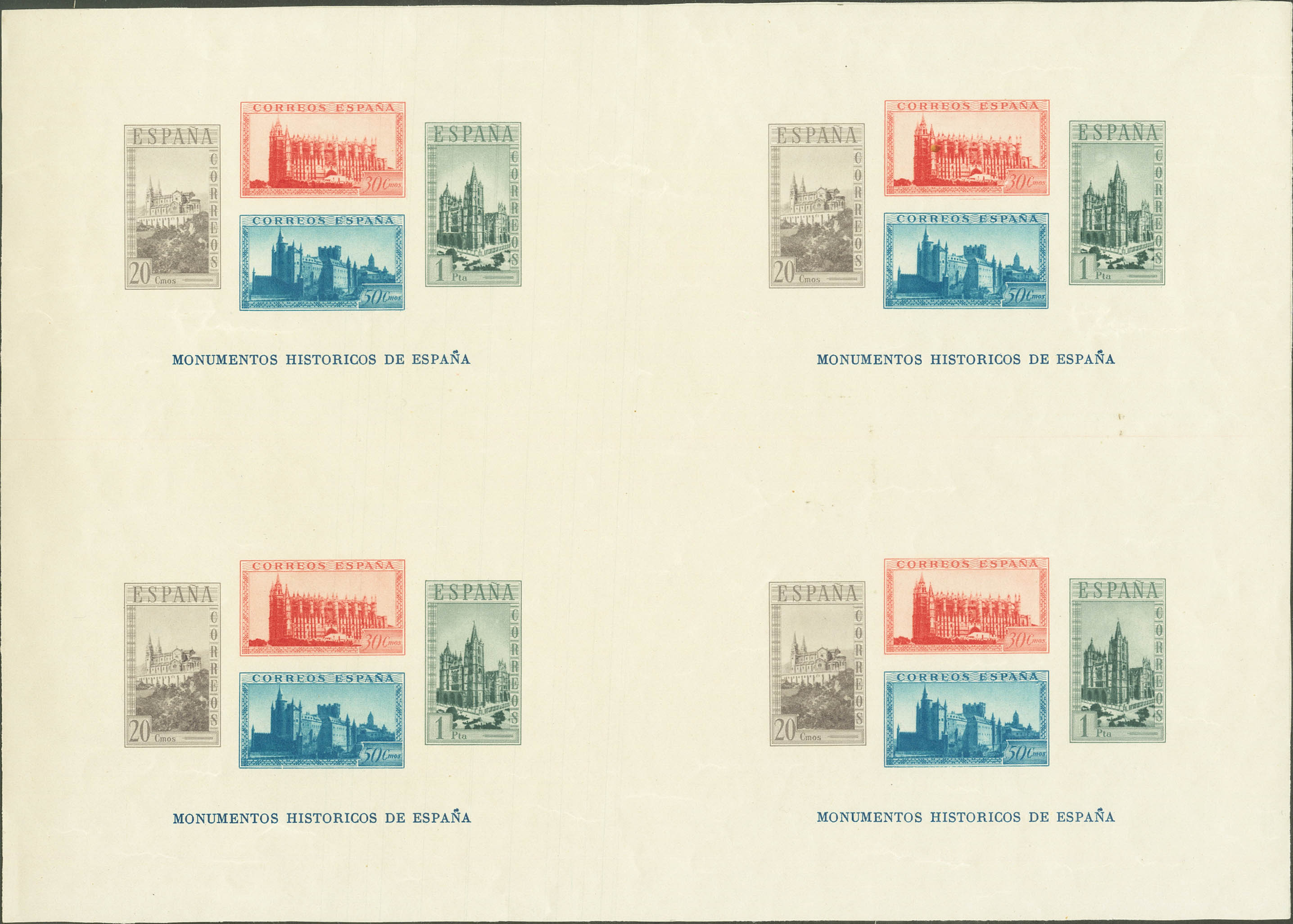 ★★ 848P(4). 1938. Four block sheets (uncut) (some usual wrinkles). WITHOUT TOOTH. MAGNIFICENT AND RARE. Edifil 2024: ++720 Euros